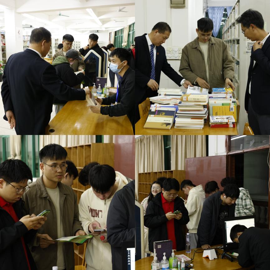 活動結(jié)束后參會的領(lǐng)導(dǎo)和輔導(dǎo)員,與同學(xué)們一起走進圖書館。
