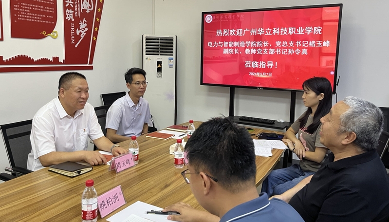 電力與智能制造學院黨總支為了做好樣板黨支部的創(chuàng)建工作,5月7日,學院黨總支書記褚玉峰、教師黨支部書記孫令真去到廣東省第四批高校樣板黨支部——廣州華商職業(yè)學院智能工程學院教師黨支部考察學習。廣州華商職業(yè)學院智能工程學院院長黃河、黨總支書記姚柏洲、教師黨支部副書記張蒙莉熱情接待了我院領導。