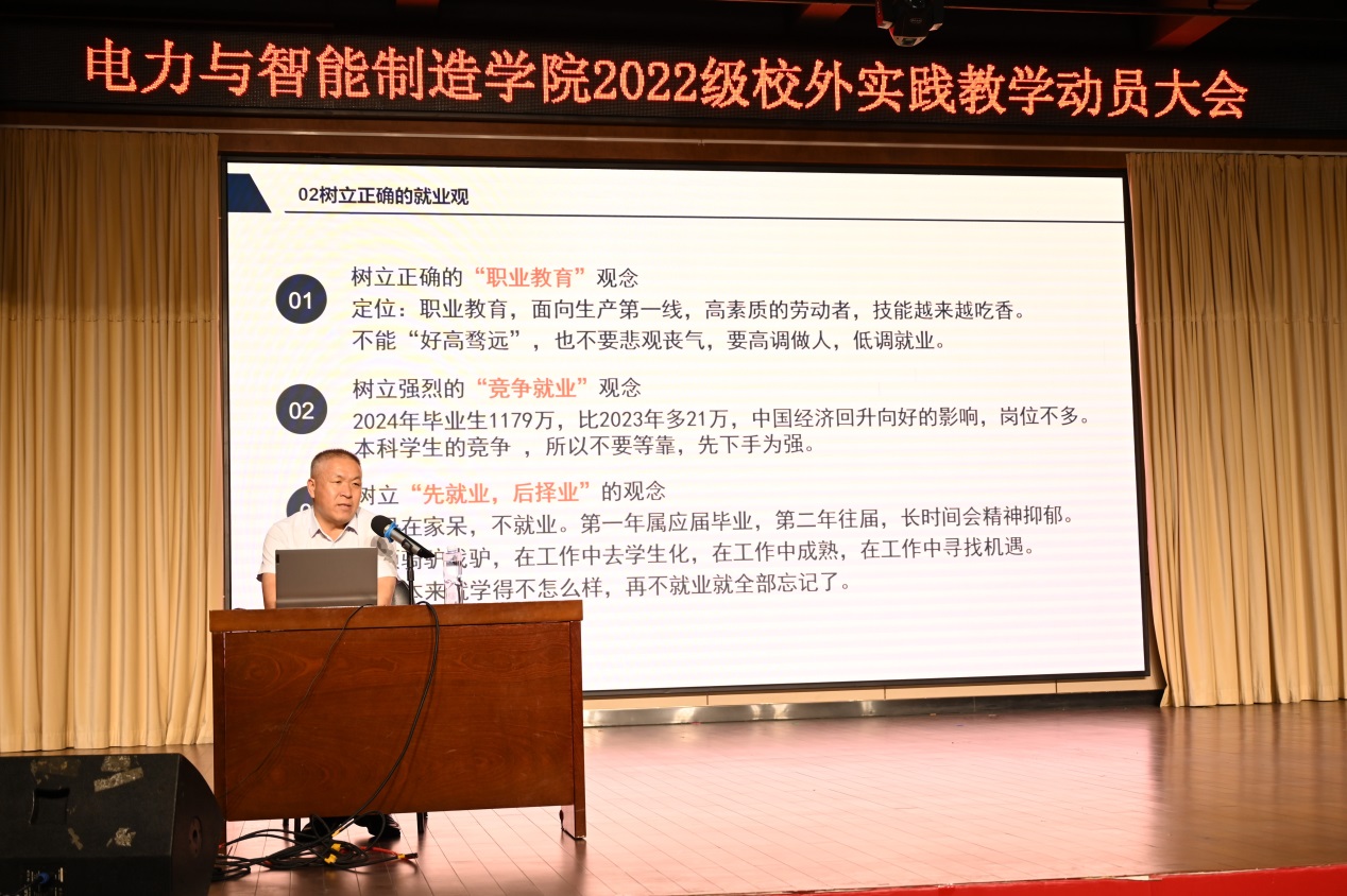 (校外實(shí)踐教學(xué)動(dòng)員大會(huì)現(xiàn)場楊軍主任發(fā)言)