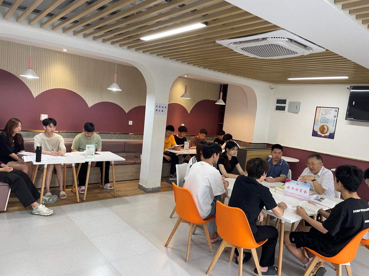 作為電力與智能制造學院的教師黨員王林,于5月15日走進學校一站式學生社區(qū)的G4樓下的書吧,組織同學們進行讀書分享。