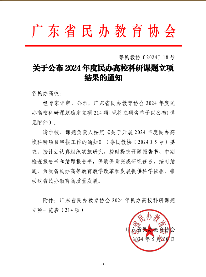 近日,廣東省民辦教育協(xié)會公布了《2024年度民辦高??蒲姓n題立項結(jié)果的通知》,我院申報的“民辦高校基層黨組織以黨建引領(lǐng)文化育人工作的實踐與研究”項目成功立項。