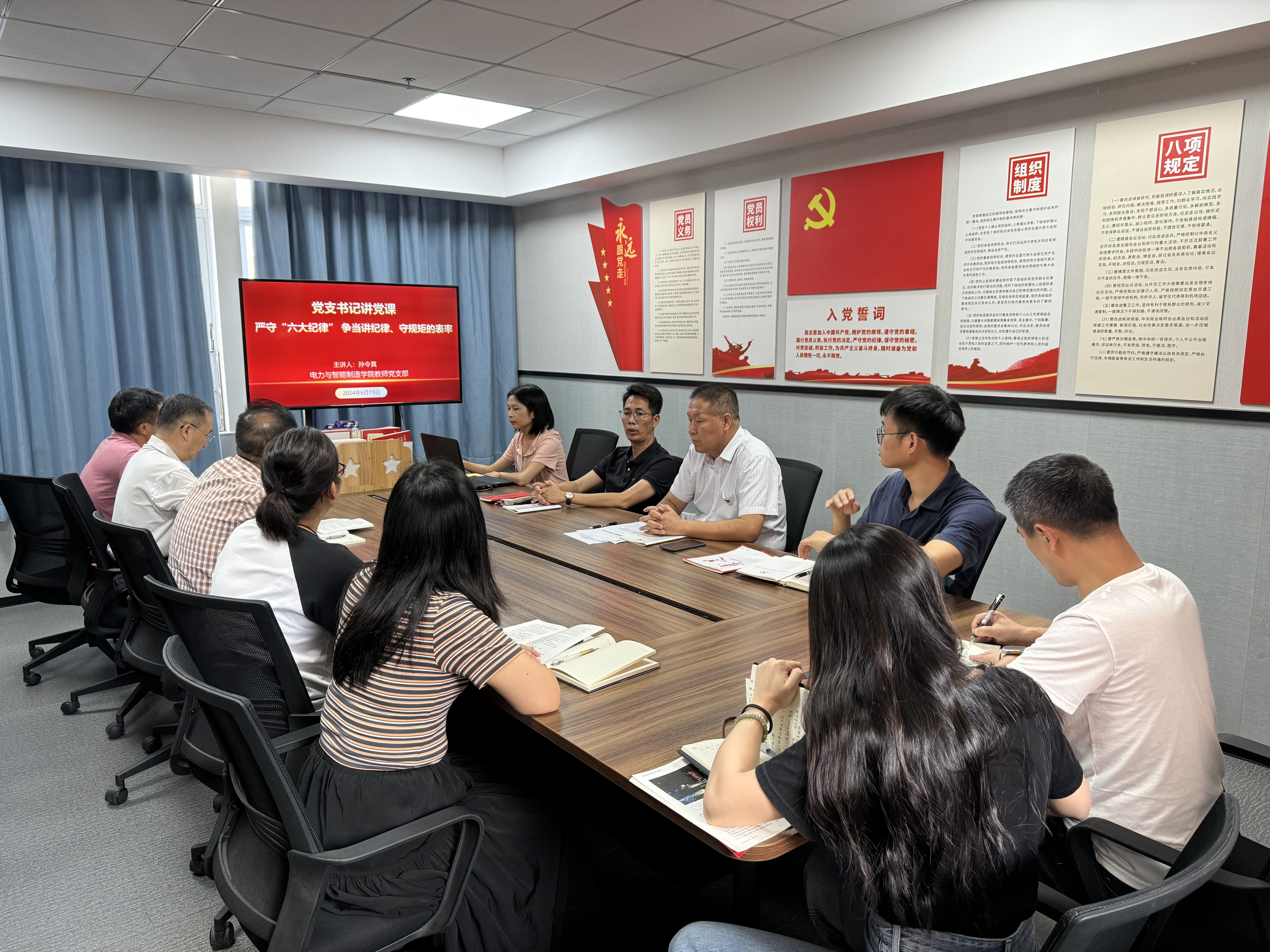 6月19日下午,電力與智能制造學(xué)院黨總支教師黨支部召開黨紀(jì)學(xué)習(xí)教育會,教師黨支部全體黨員參加會議,會議由黨支書記孫令真主持,學(xué)院黨總支書記褚玉峰也參加了會議。
