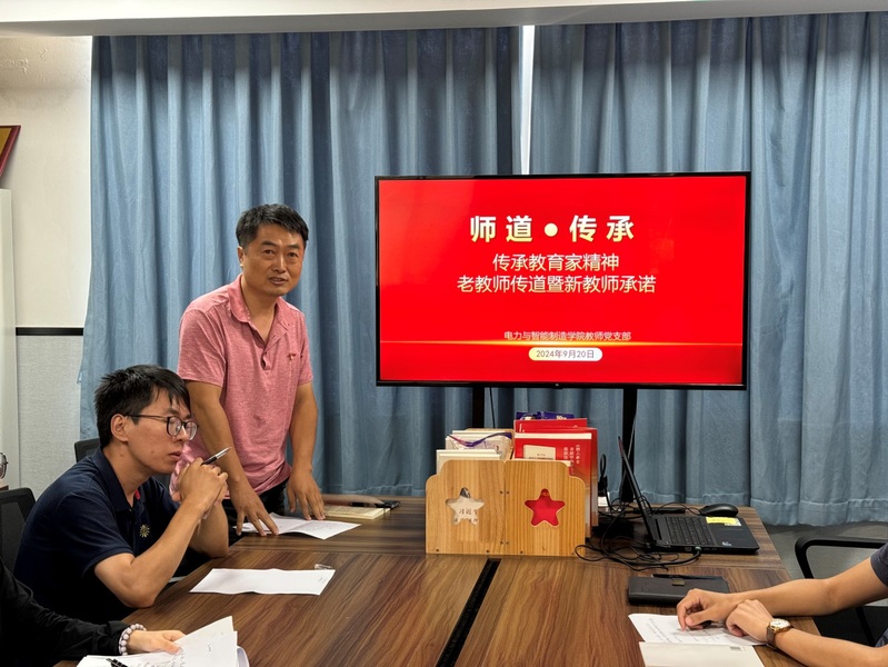 為了學(xué)習(xí)貫徹黨的二十屆三中全會精神,大力弘揚教育家精神,加快建設(shè)教育強國,9月20日下午在西1-514A會議室,電力與智能制造學(xué)院教師黨支部組織召開全體教師大會,開展“師道傳承”——老教師傳道暨新教師承諾活動,學(xué)院黨總支書記、院長褚玉峰及全體教師參加了會議,會議由教師黨支部書記孫令真主持。
