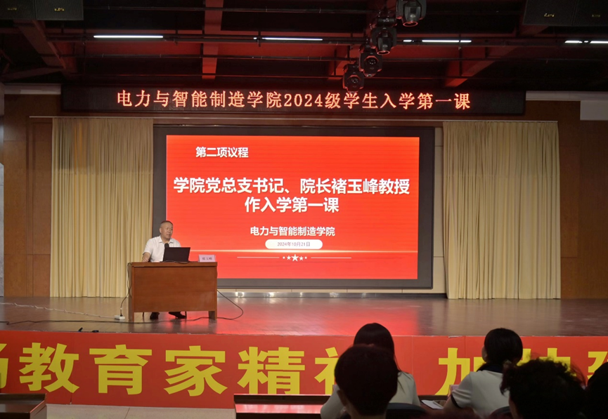 揚(yáng)帆起航,迎接新挑戰(zhàn)。為了幫助新生快速適應(yīng)新環(huán)境、融入大學(xué)生生活,10月21日和10月23日,電力與智能制造學(xué)院黨總支書記、院長(zhǎng)褚玉峰給24級(jí)全體新生上了入學(xué)教育第一課暨大學(xué)生生涯規(guī)劃教育。會(huì)議由林文錦同學(xué)主持,學(xué)院黨總支書記、院長(zhǎng)褚玉峰教授,學(xué)院黨總支副書記、學(xué)管副主任鄭理廣老師,學(xué)院團(tuán)委書記鐘穎老師,2024級(jí)輔導(dǎo)員及全體2024級(jí)新同學(xué)參加了會(huì)議。