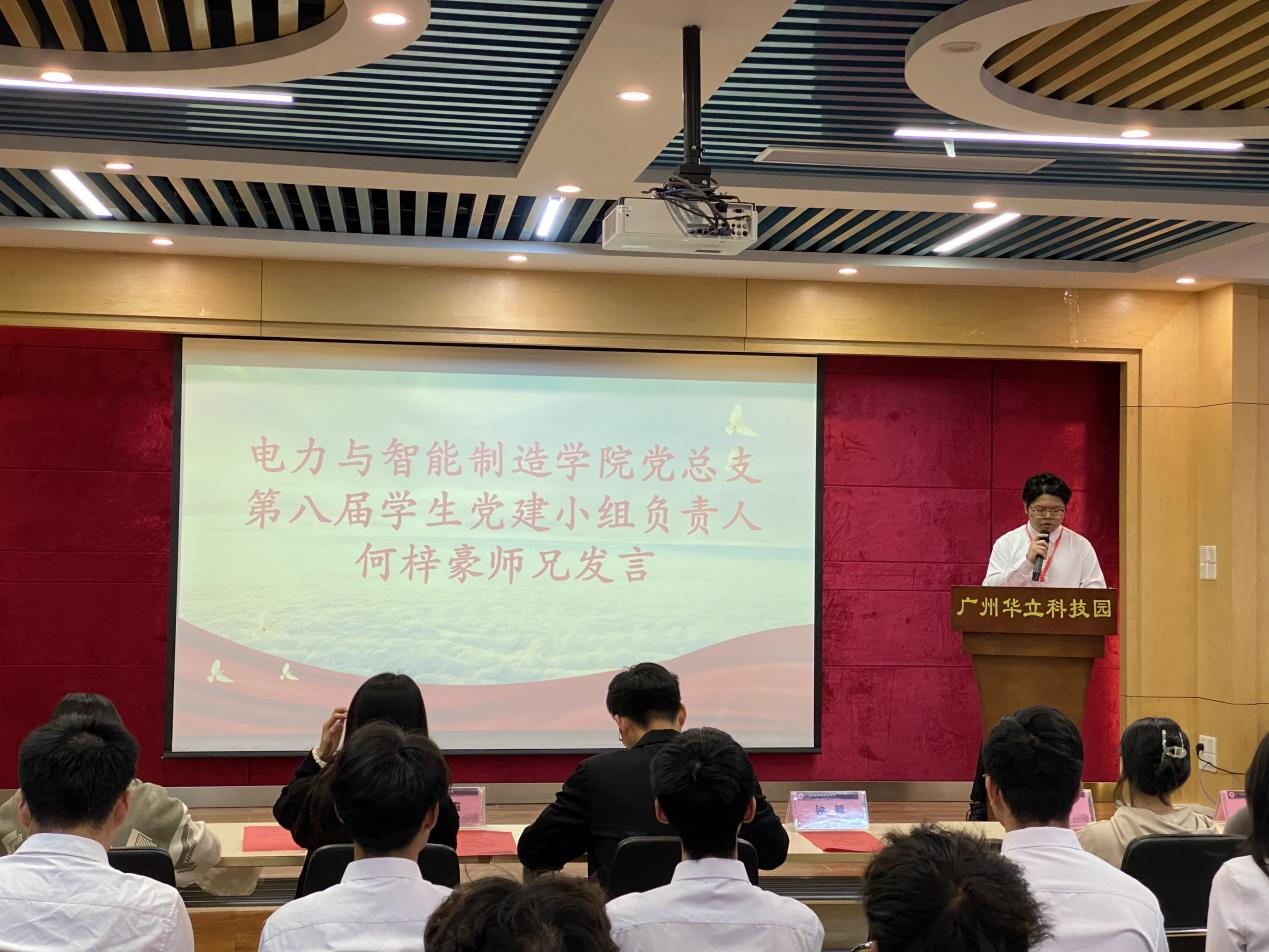 電力學院第八屆學生黨建小組總負責人何梓豪師兄上臺發(fā)言