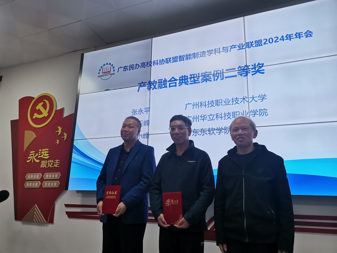 會上,公布了廣東民辦高校科協(xié)聯(lián)盟智能制造學科與產(chǎn)業(yè)聯(lián)盟 2024年產(chǎn)教融合創(chuàng)新案例獲獎名單,我院的“黨建引領產(chǎn)教融合創(chuàng)新案例”獲得二等獎。