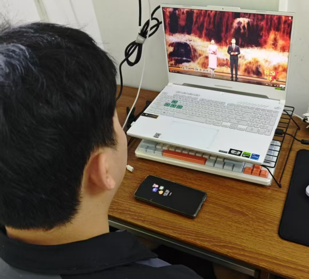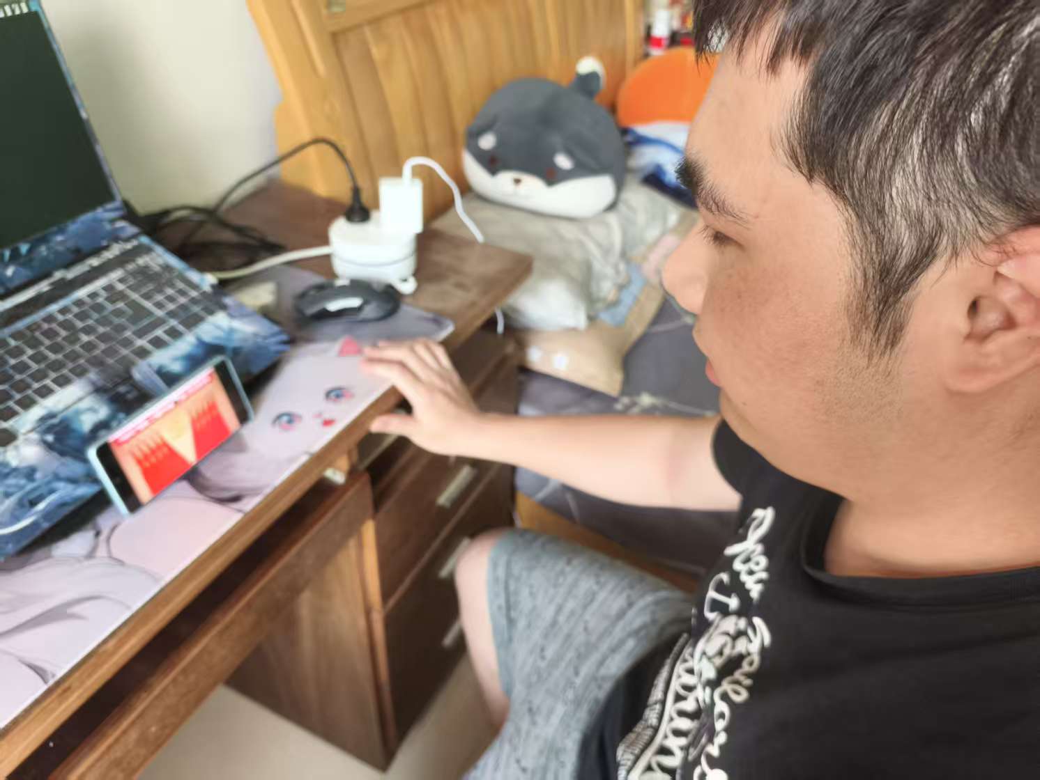 黃偉杰同學(xué)正在觀看《榜樣9》