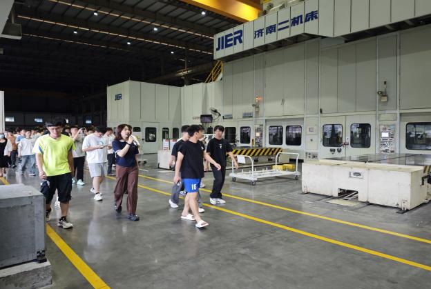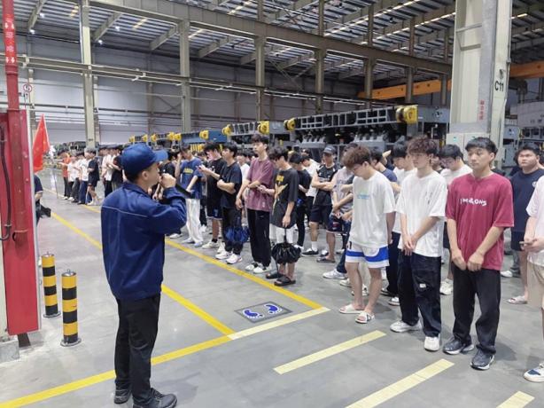 在講解員的引導(dǎo)下,師生們依次走進(jìn)沖壓、焊裝、總裝等工藝車(chē)間,了解汽車(chē)制造從零部件到整車(chē)的全流程。目睹高度自動(dòng)化生產(chǎn)線的機(jī)械韻律,凝視全智能機(jī)器人焊接的火花,駐足嚴(yán)格質(zhì)量保障體系執(zhí)行的現(xiàn)場(chǎng),同學(xué)不僅見(jiàn)證了現(xiàn)代汽車(chē)制造的科技實(shí)力,更被“行有道·達(dá)天下”的企業(yè)文化于“奮力拼搏、團(tuán)結(jié)協(xié)作、知難而進(jìn),志在必得”的企業(yè)精深深觸動(dòng)。正是新時(shí)代產(chǎn)業(yè)工人每個(gè)技術(shù)突破的累積,構(gòu)筑起現(xiàn)代化產(chǎn)業(yè)體系的基石;正是每道精益求精的制造工藝,書(shū)寫(xiě)著技能報(bào)國(guó)的青春答卷。