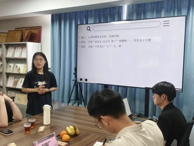 輔導員郭曉倩老師分享了如何做好學生的心理關懷與支持。她強調(diào)班級應該建立速動通報,確保學生信息保密性,以提高師生關系互動和情感交流,從而提高學生的安全感。