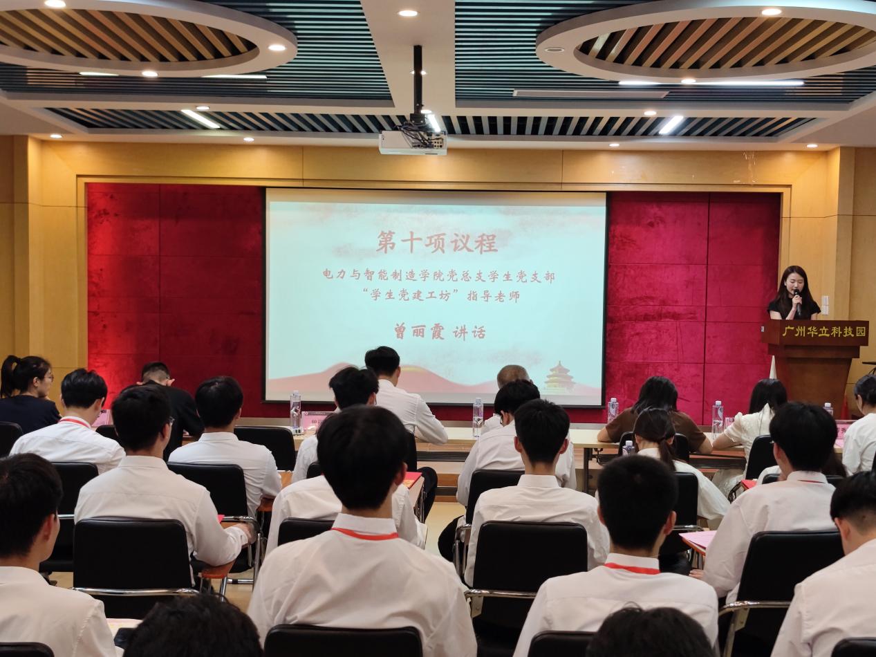 會上,學(xué)院黨總支書記褚玉峰教授宣布“學(xué)生黨建工坊”成立并致辭,他講到成立“學(xué)生黨建工坊”是電力與智能制造學(xué)院加強和改進新時代大學(xué)生思想政治教育工作,提升學(xué)生黨建工作質(zhì)量的重要舉措,是打造學(xué)生黨支部特色黨建品牌的需要,對幫助學(xué)生黨員和入黨積極分子深入學(xué)習(xí)黨的創(chuàng)新理論、路線方針政策、黨史國史,深刻理解習(xí)近平新時代中國特色社會主義思想具有重要意義?!皩W(xué)生黨建工坊”可以成為連接校內(nèi)思政課教師、黨務(wù)工作者、專業(yè)教師、校外專家學(xué)者的橋梁,引入更豐富的育人力量;可以發(fā)揮朋輩效應(yīng),為學(xué)生黨員、入黨積極分子、普通學(xué)生之間,提供深入交流空間,分享學(xué)習(xí)心得、成長困惑、實踐經(jīng)驗,營造濃厚的“儒雅電力人”文化育人氛圍,潛移默化地影響廣大學(xué)生。最后,希望我們齊心協(xié)力,把“學(xué)生黨建工坊”打造成為我們學(xué)院學(xué)生黨建工作的“紅色熔爐”和“先鋒營地”。