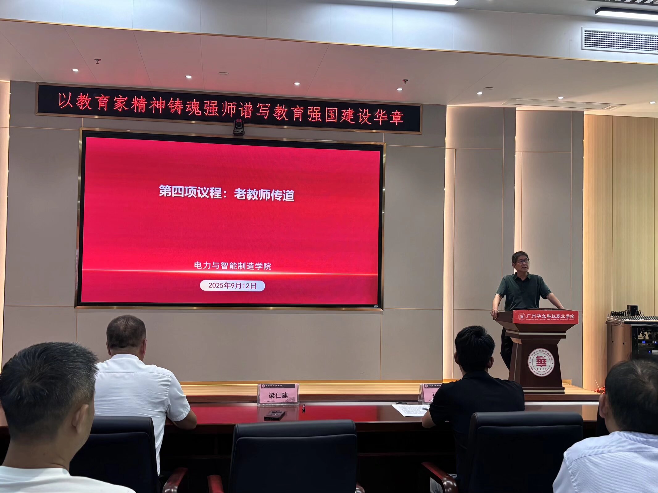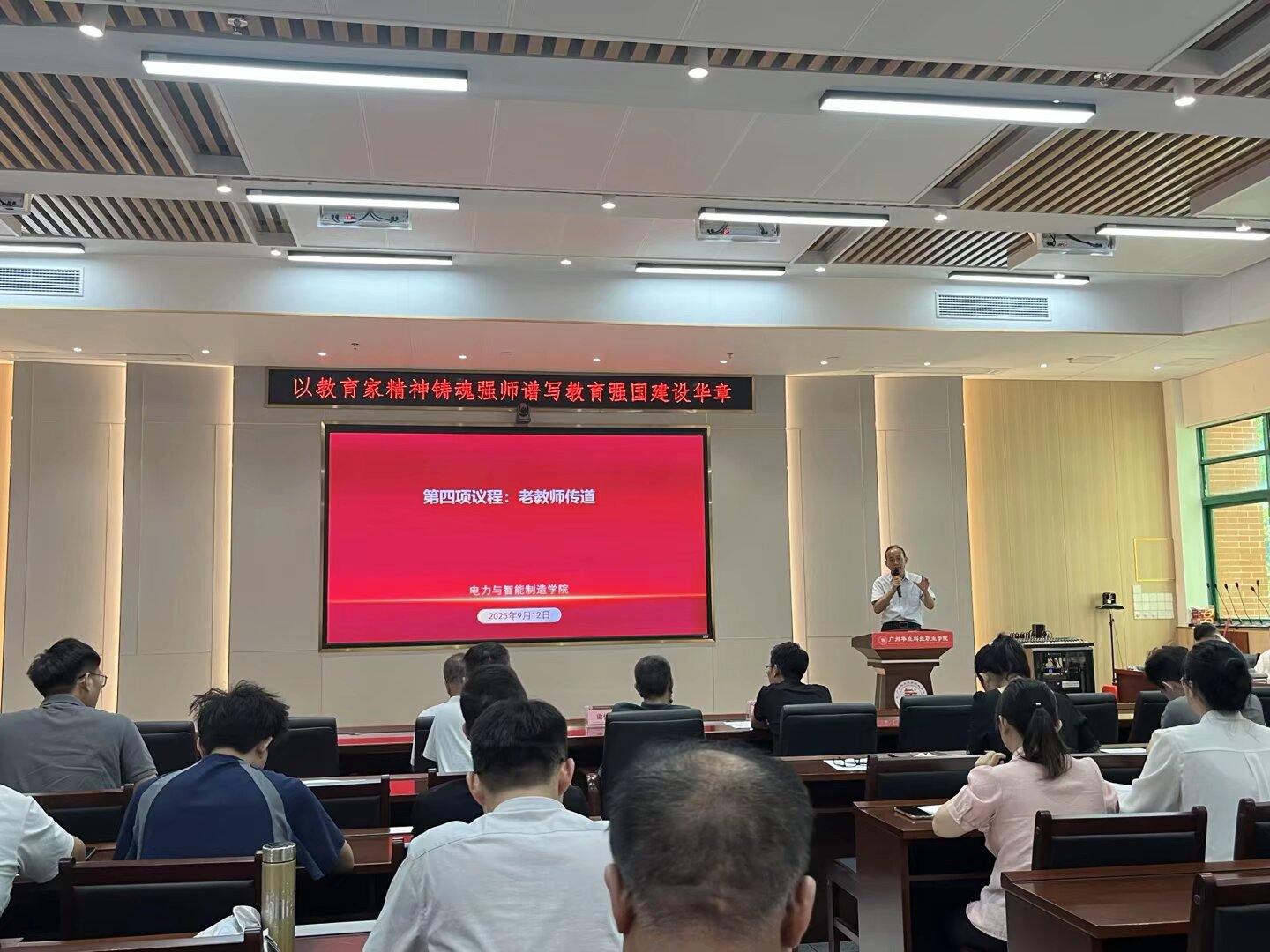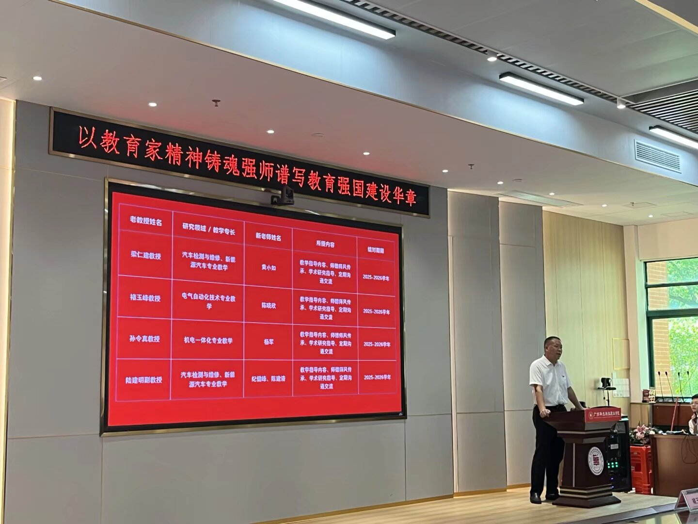 接著,現(xiàn)場簽訂承諾書。全體教師簽署《廣州華立科技職業(yè)學(xué)院教師師德師風(fēng)承諾書》,以書面形式固化承諾內(nèi)容,進(jìn)一步強(qiáng)化對師德師風(fēng)規(guī)范的認(rèn)同與踐行,彰顯全體教師恪守師德、潛心育人的堅(jiān)定決心。會上公布了電力與智能制造學(xué)院“老帶新”傳幫帶名單。本次傳幫帶分為兩個(gè)組別:其一,由電力學(xué)院四名老教授與新教師建立“一對一”指導(dǎo)關(guān)系,助力新教師快速提升教學(xué)能力與職業(yè)素養(yǎng);其二,安排四名經(jīng)驗(yàn)豐富的輔導(dǎo)員對新輔導(dǎo)員開展“一對一”指導(dǎo),為新輔導(dǎo)員開展學(xué)生工作筑牢基礎(chǔ)。