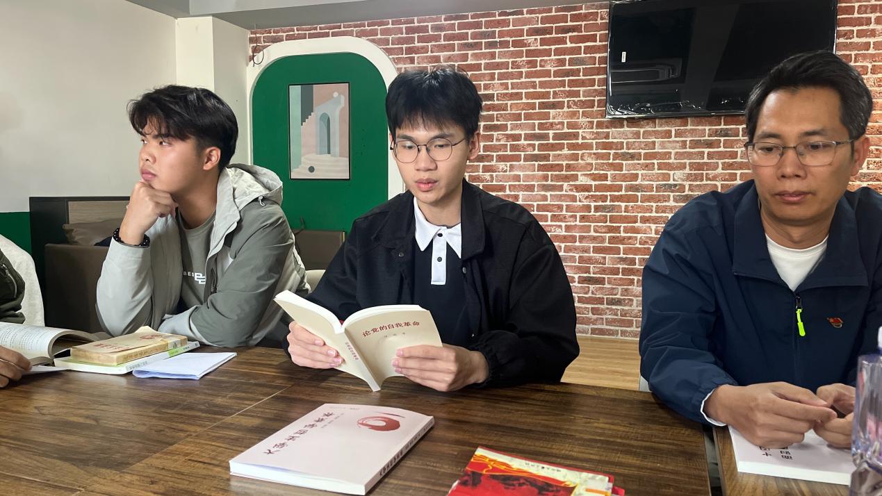 葉釋文同學(xué)分享了《舒城紅——行走在百公里紅飄帶上》的閱讀感悟。他認(rèn)為,該書以細(xì)膩的筆觸和“在地者”的真誠,讓紅色歷史觸手可及。書中傳遞的奮斗精神,更是激勵(lì)當(dāng)代人不忘初心,砥礪前行。