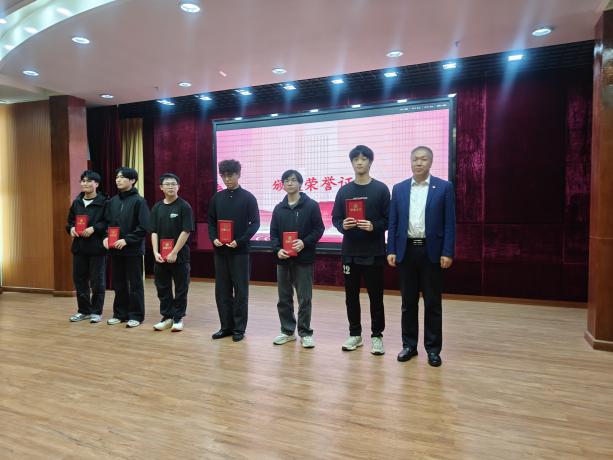(學(xué)院黨總支書記褚玉峰、黨總支專職副書記鄭理廣、學(xué)生黨建工坊指導(dǎo)老師王凱為獲獎隊伍頒獎)