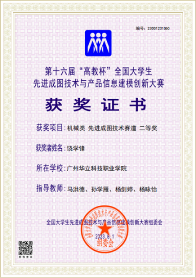 陳曉鋒同學為2024屆畢業(yè)模具設計與制造專業(yè)畢業(yè)生,目前留校擔任科研助理一職。在校期間考取了數(shù)控銑四級工和二級制圖員。