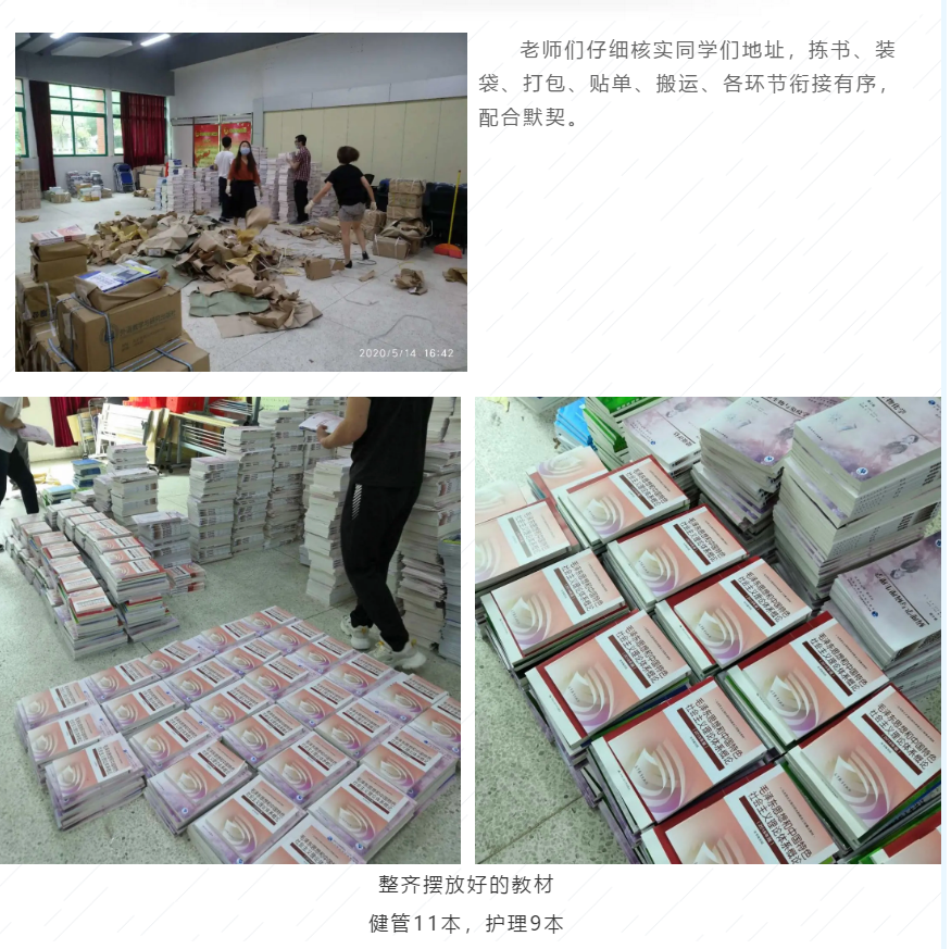 由于居家學(xué)習(xí),沒有教材在手,這給師生們都帶來了些許不便,因此,為了提高教學(xué)質(zhì)量,保證線上學(xué)習(xí)效果,學(xué)校決定將教材郵寄到家。
