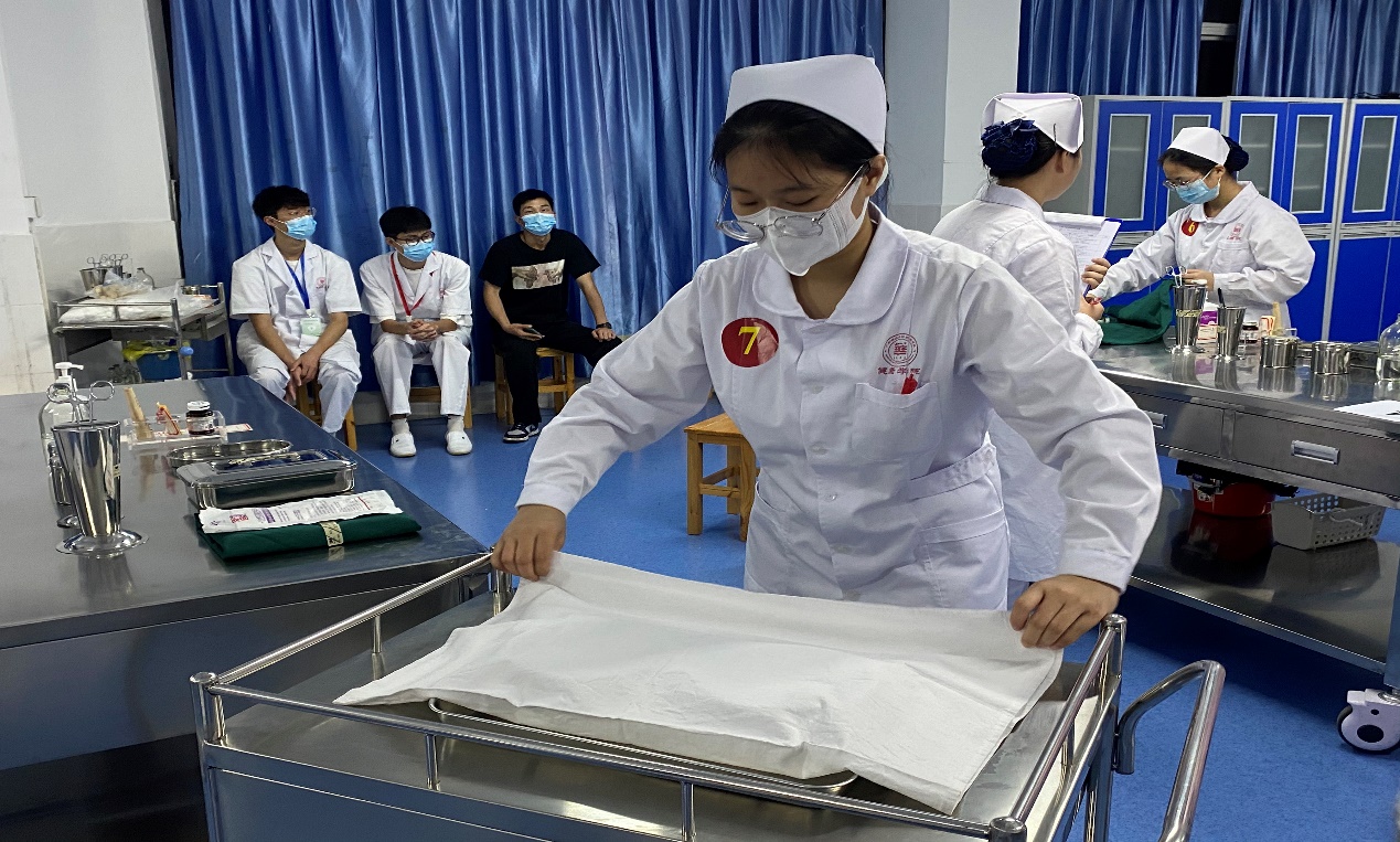 春暖花開的五月,迎來了第111個“國際護(hù)士節(jié)”和華立學(xué)院“大學(xué)生勞動教育月”技能成才強國有我的主題活動,為弘揚南丁格爾精神,激發(fā)全體師生對醫(yī)護(hù)知識的熱情,增強職業(yè)認(rèn)同,強化無菌觀念及急救意識,提高護(hù)理技能操作水平和綜合職業(yè)素養(yǎng),健康學(xué)院于2022年5月11日、12日在西三教學(xué)樓502實驗室舉辦了第三屆護(hù)理技能比賽。