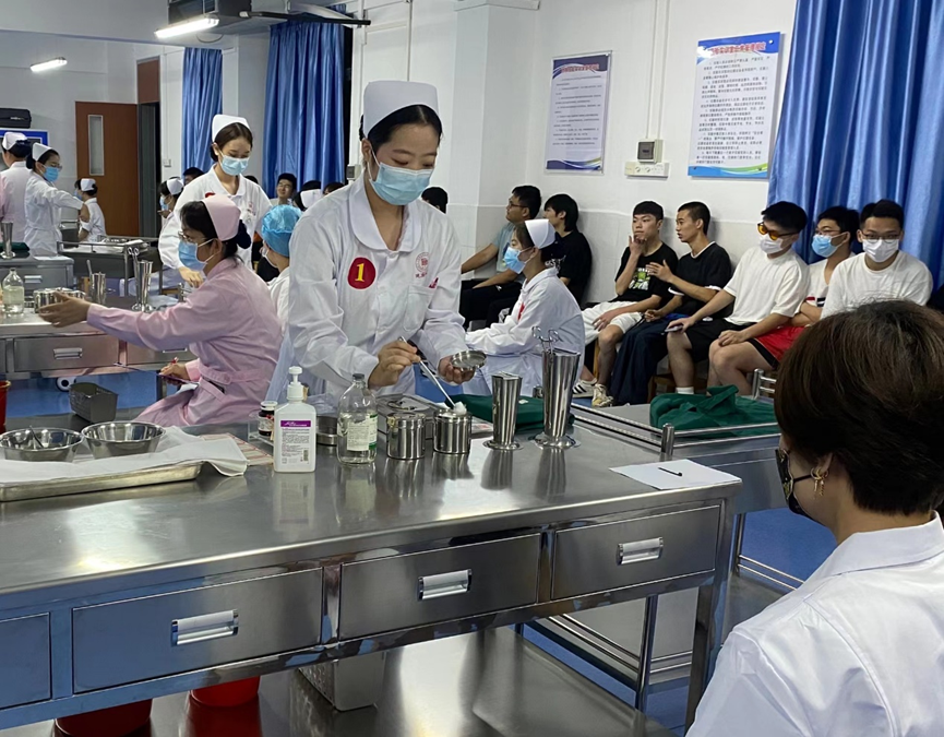 14名教師和107名學(xué)生參加了這次活動。學(xué)校督導(dǎo)辦副主任曾紀(jì)杰教授等督導(dǎo)親臨現(xiàn)場指導(dǎo)。經(jīng)過5月11日“單人徒手心肺復(fù)蘇術(shù)”項目比賽和5月12日“無菌技術(shù)操作”項目比賽,本次活動圓滿落下帷幕。