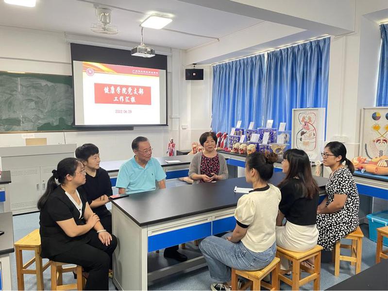 2022年6月9日上午,學(xué)校黨委書記林偉健、黨辦干事朱方方赴健康學(xué)院調(diào)研指導(dǎo),健康學(xué)院張志勇副院長,學(xué)管主任胡彩霞等相關(guān)負(fù)責(zé)同志陪同調(diào)研,學(xué)院學(xué)管全體人員參加調(diào)研座談會(huì)。