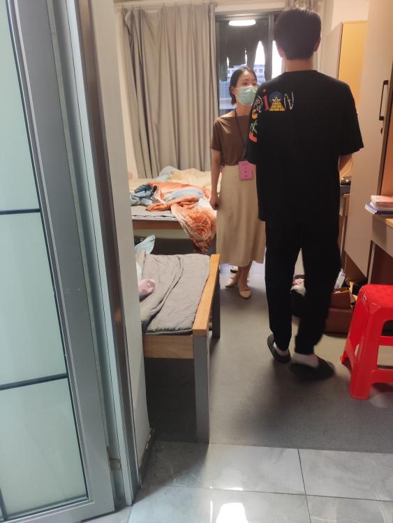 對(duì)于各項(xiàng)安全隱患進(jìn)行了細(xì)致地排查,特別是使用大功率電器的情況。以及衛(wèi)生清潔工作。同時(shí),老師們細(xì)心地詢問了同學(xué)們宿舍、學(xué)習(xí)等情況,并且強(qiáng)調(diào)同學(xué)們注意疫情期間的防控、宿舍清潔、加強(qiáng)身體鍛煉。