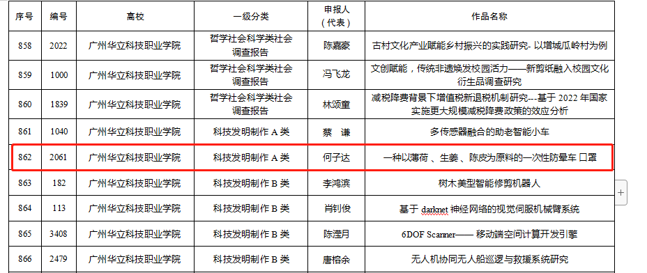 其中我院“一種以薄荷、生姜、陳皮為原料的一次性防暈車口罩”項(xiàng)目(指導(dǎo)老師:丁娟萍、徐劍輝;學(xué)生負(fù)責(zé)人:何子達(dá))榮獲三等獎(jiǎng)。