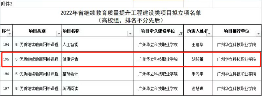 根據(jù)《廣東省教育廳關(guān)于開展2022年省繼續(xù)教育質(zhì)量提升工程建設(shè)類項(xiàng)目申報(bào)工作的通知》等文件要求,經(jīng)地級(jí)以上市教育局和高校推薦、資格審查、專家評(píng)分等環(huán)節(jié),廣東省教育廳公布了2022年廣東繼續(xù)教育質(zhì)量提升工程建設(shè)類項(xiàng)目擬立項(xiàng)名單,共評(píng)出立項(xiàng)項(xiàng)目773個(gè)。我院《健康評(píng)估》課程喜獲立項(xiàng)優(yōu)質(zhì)繼續(xù)教育網(wǎng)絡(luò)課程。