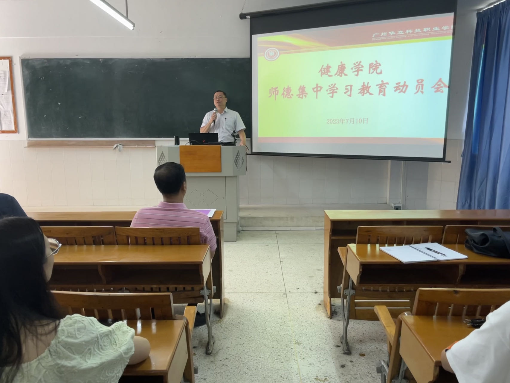 為深入學(xué)習(xí)貫徹習(xí)近平新時代中國特色社會主義思想,貫徹學(xué)習(xí)習(xí)近平總書記關(guān)于教育的重要論述和指示批示精神,堅決落實師德師風(fēng)第一標(biāo)準(zhǔn),根據(jù)廣州華立科技職業(yè)學(xué)院《關(guān)于在學(xué)校開展全體教師師德集中學(xué)習(xí)教育的通知》文件精神,2023年7月10日下午,健康學(xué)院組織學(xué)院全體教師在西2-201會議室舉行師德集中學(xué)習(xí)教育動員會。會議由學(xué)院直屬黨支部書記、副院長孟允煌主持,院長雷毅雄對如何切實抓好學(xué)院的師德師風(fēng)建設(shè)提出了具體要求。