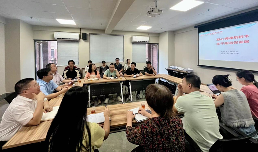 按照《中共廣州華立科技職業(yè)學院委員會關于深入開展學習貫徹習近平新時代中國特色社會主義思想主題教育的實施方案》的總體部署,2023年7月14日中午,健康/中醫(yī)藥學院開展主題教育專題黨課活動,邀請學校機關一黨支部書記鐘文浩作專題黨課講授。健康學院直屬黨支部書記孟允煌;中醫(yī)藥學院直屬黨支部書記曾祥彪、副院長張志勇以及學院黨員教師代表、輔導員和學生代表參加黨課學習。