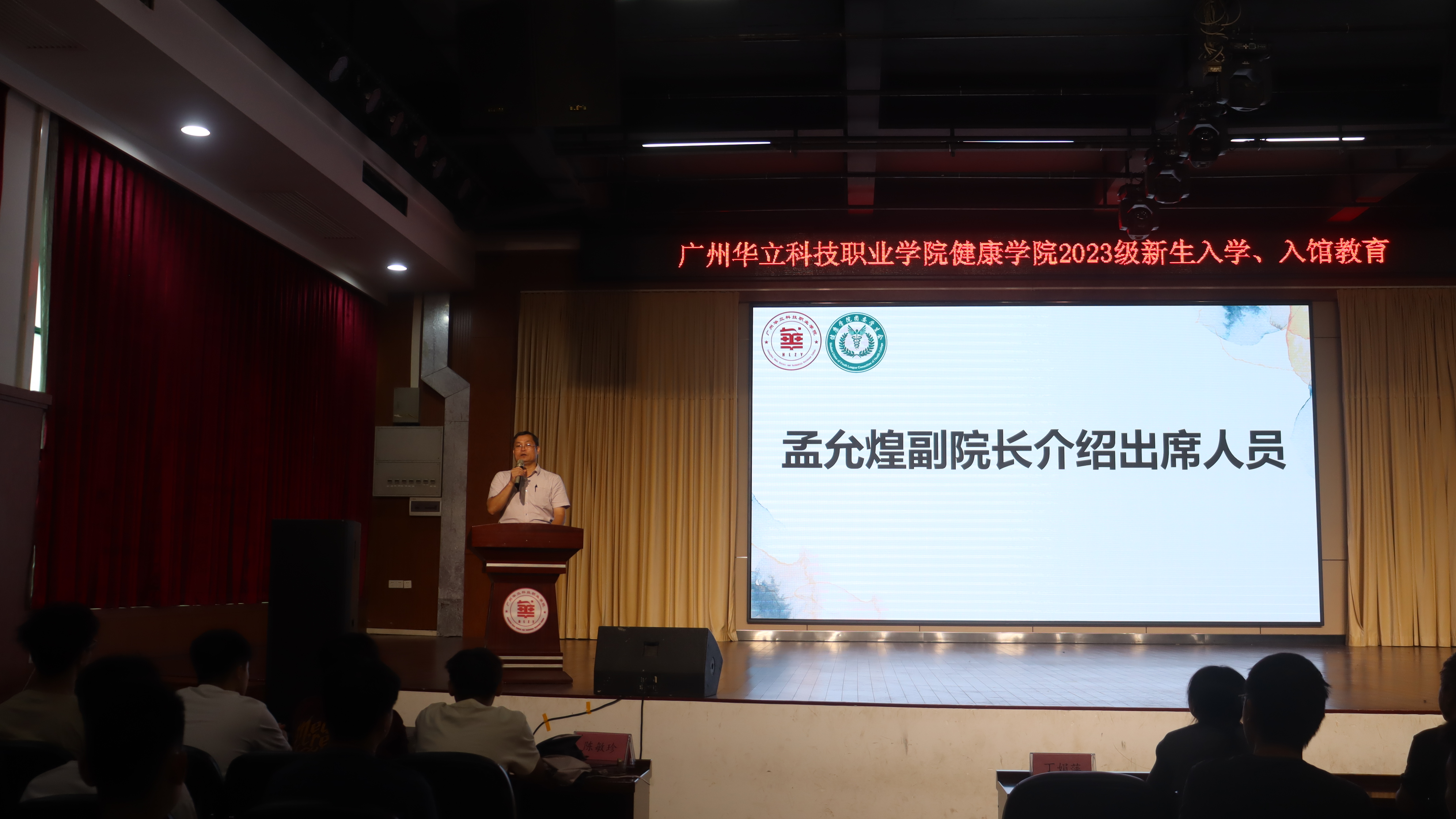 窗外雨絲紛紛,如詩(shī)如畫(huà),2023級(jí)新生們帶著紅膠凳,有秩序地入場(chǎng)就坐?;顒?dòng)開(kāi)始,健康學(xué)院直屬黨支部書(shū)記、副院長(zhǎng)孟允煌首先介紹出席人員。他激勵(lì)同學(xué)們不僅要學(xué)習(xí)好,還要積極向黨組織靠攏,以實(shí)際行動(dòng)爭(zhēng)取早日加入中國(guó)共產(chǎn)黨。