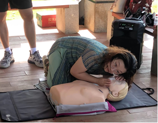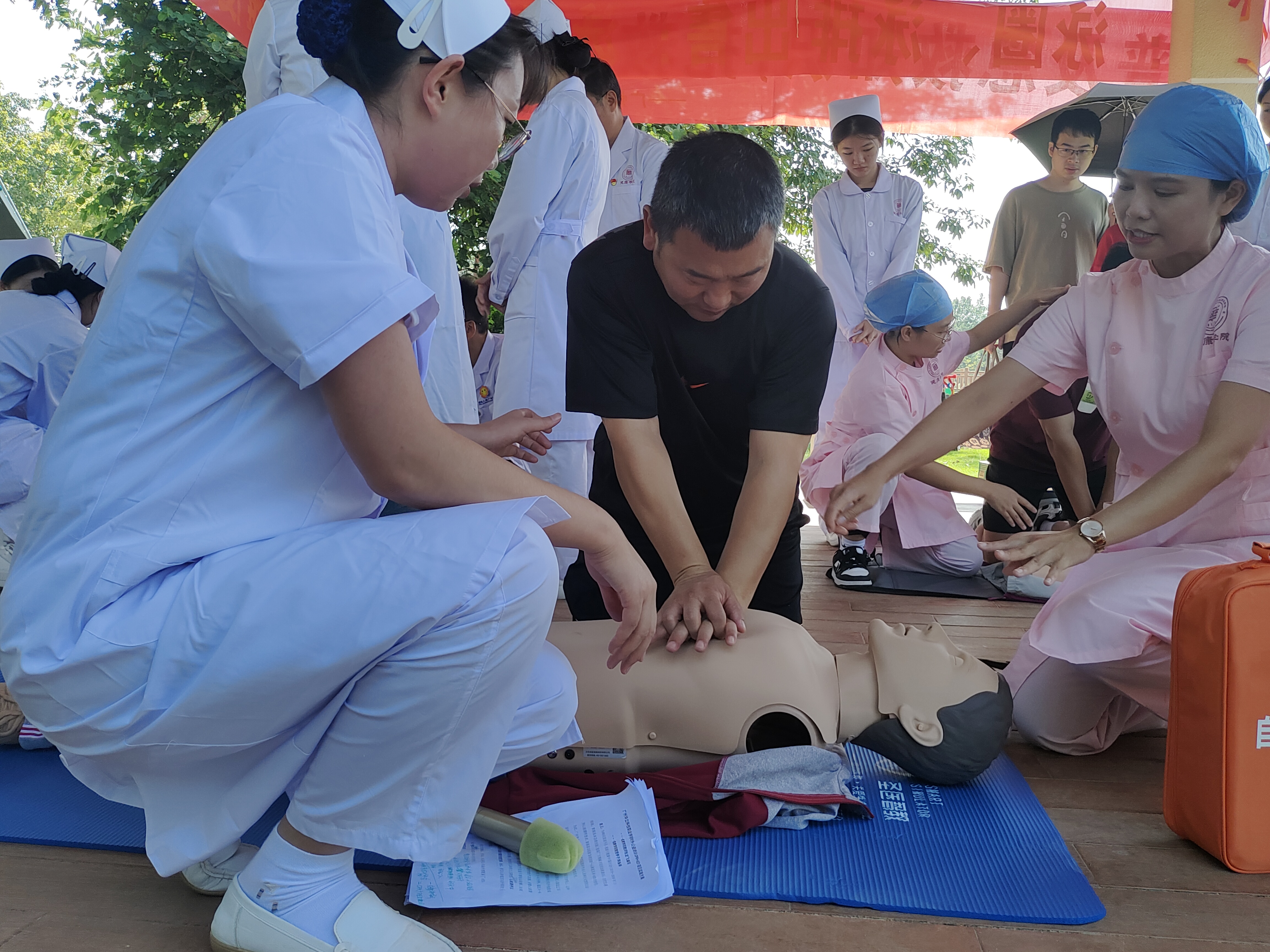 現(xiàn)場(chǎng)群眾現(xiàn)場(chǎng)參與急救技能訓(xùn)練