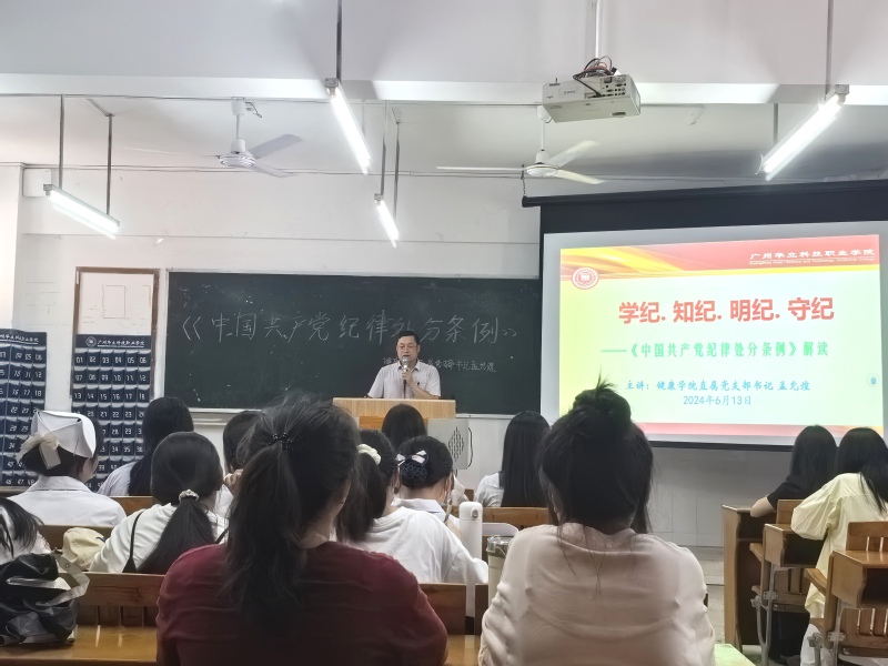 為深入學(xué)習(xí)貫徹落實(shí)新修訂的《中國共產(chǎn)黨紀(jì)律處分條例》,2024年6月13日中午,健康學(xué)院直屬黨支部根據(jù)學(xué)校黨委黨紀(jì)學(xué)習(xí)教育工作方案,在西2-203多媒體教室舉行黨紀(jì)學(xué)習(xí)教育專題培訓(xùn),孟允煌書記為學(xué)院全體黨員及學(xué)生入黨積極分子代表進(jìn)行授課。