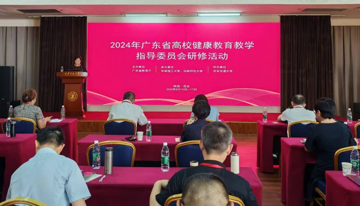 研修活動由廣東省教育廳主辦,華南理工大學(xué)和華南師范大學(xué)承辦,西安交通大學(xué)協(xié)辦。參加人員有教育部體衛(wèi)藝司和廣東省教育廳相關(guān)工作負責同志、國家高校健康教育指導(dǎo)委員會相關(guān)專家,以及省高校健康教育教指委全體委員等60多人。大會旨在深入貫徹習近平總書記健康第一教育理念,落實2024 年全國教育工作會議精神,全面梳理廣東省高校健康教育教學(xué)指導(dǎo)委員會成立以來工作情況,切實提升高校健康教育教指委委員專業(yè)素養(yǎng),更好發(fā)揮高校健康教育教指委智庫作用,促進健康教育在培育和踐行社會主義核心價值觀、推進高校素質(zhì)教育中的綜合作用。