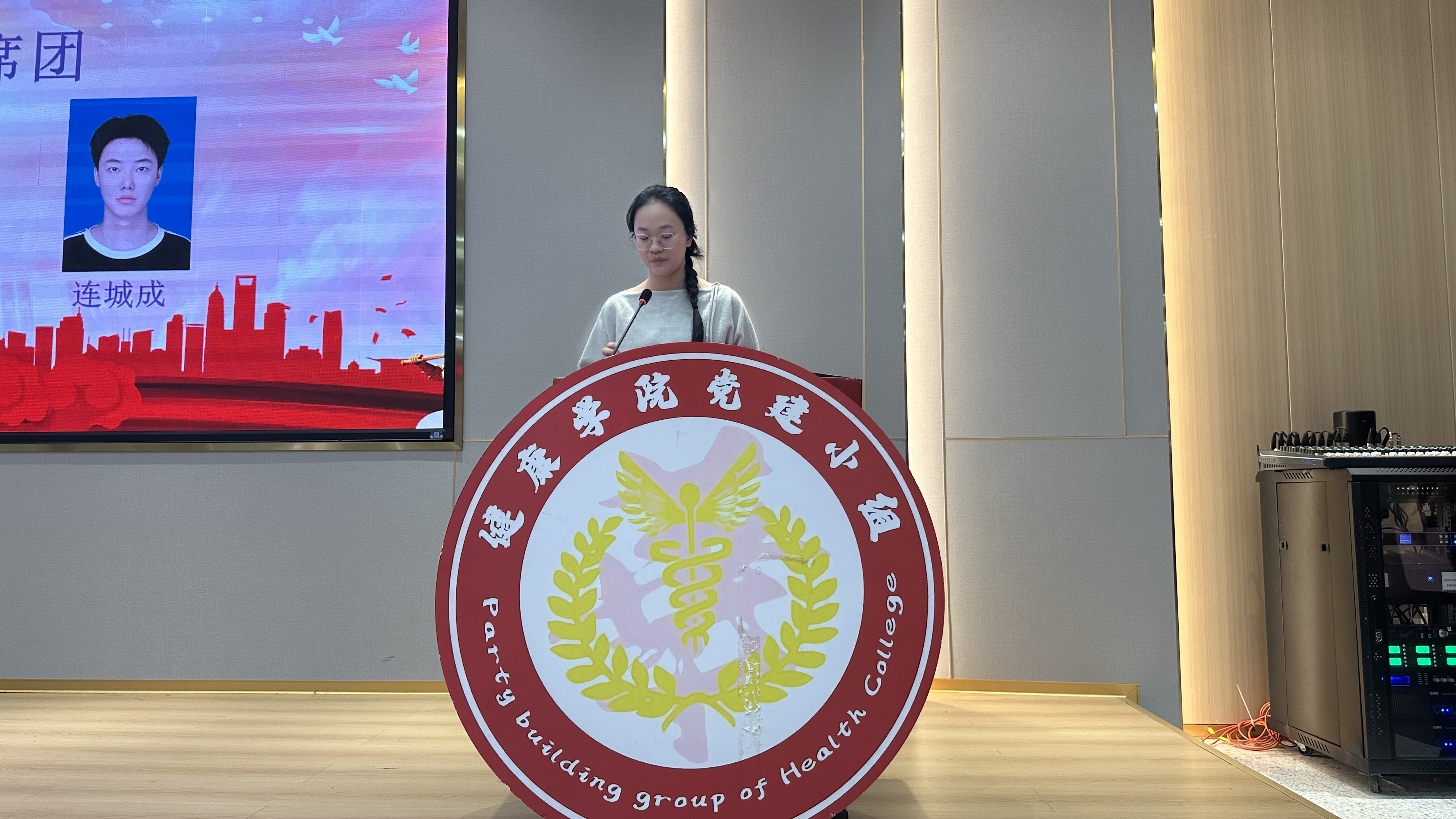 健康學(xué)院直屬黨支部組織委員冼嘉祺老師宣讀第七屆黨建小組干部名單,向大會全體成員的辛勤付出表示感謝,向2025級新生干事致以歡迎。她指出,新生力量將為黨建小組注入新活力與創(chuàng)造力,同時(shí)希望全體干部履職盡責(zé)、發(fā)揮模范作用,以高度責(zé)任感參與黨建工作,助力黨建任務(wù)落地見效。
