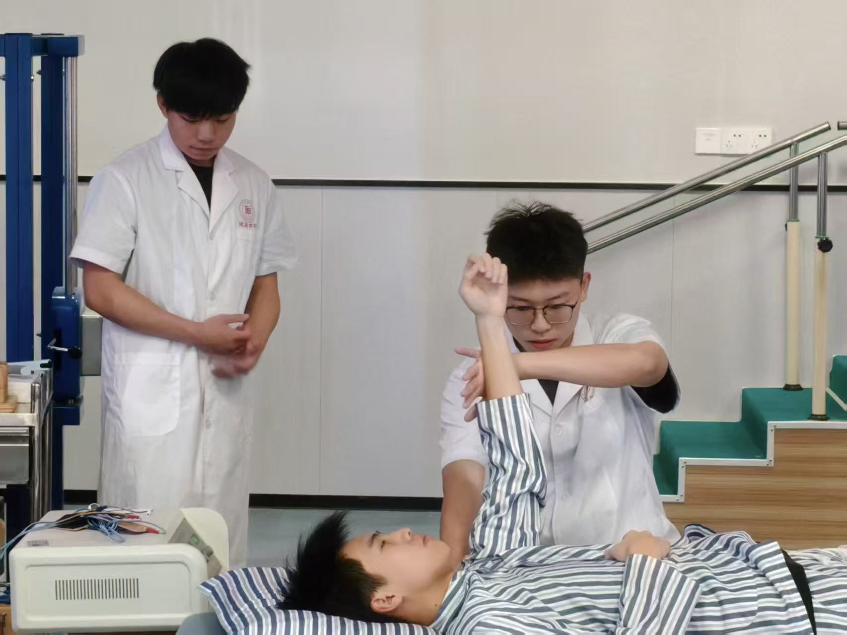 本次競(jìng)賽緊密契合國(guó)家“健康中國(guó)”戰(zhàn)略,意在深化賽課融合的教學(xué)改革,提升學(xué)生的臨床實(shí)踐能力與人文關(guān)懷素養(yǎng),同時(shí)為省級(jí)技能競(jìng)賽選拔和儲(chǔ)備優(yōu)秀人才。競(jìng)賽采用團(tuán)隊(duì)賽形式,每隊(duì)由4名選手組成,以腦卒中真實(shí)案例為指引,完整模擬臨床問(wèn)診、評(píng)估、治療以及醫(yī)患溝通的全過(guò)程,充分考查選手的專(zhuān)業(yè)知識(shí)、操作技能和團(tuán)隊(duì)協(xié)作能力。競(jìng)賽內(nèi)容的設(shè)計(jì)貼合臨床實(shí)際情況。選手圍繞“腦卒中患者康復(fù)治療”這一主題,需在15分鐘內(nèi)完成問(wèn)診、評(píng)估、制定并實(shí)施康復(fù)措施等環(huán)節(jié),各環(huán)節(jié)的時(shí)長(zhǎng)由團(tuán)隊(duì)自行分配,總分為100分。賽題提前48小時(shí)公布,各隊(duì)需提交詳細(xì)的項(xiàng)目設(shè)計(jì)方案,該方案涵蓋患者情境設(shè)定、評(píng)估要點(diǎn)、干預(yù)策略以及應(yīng)急預(yù)案,全面檢驗(yàn)學(xué)生的臨床思維與創(chuàng)新能力。