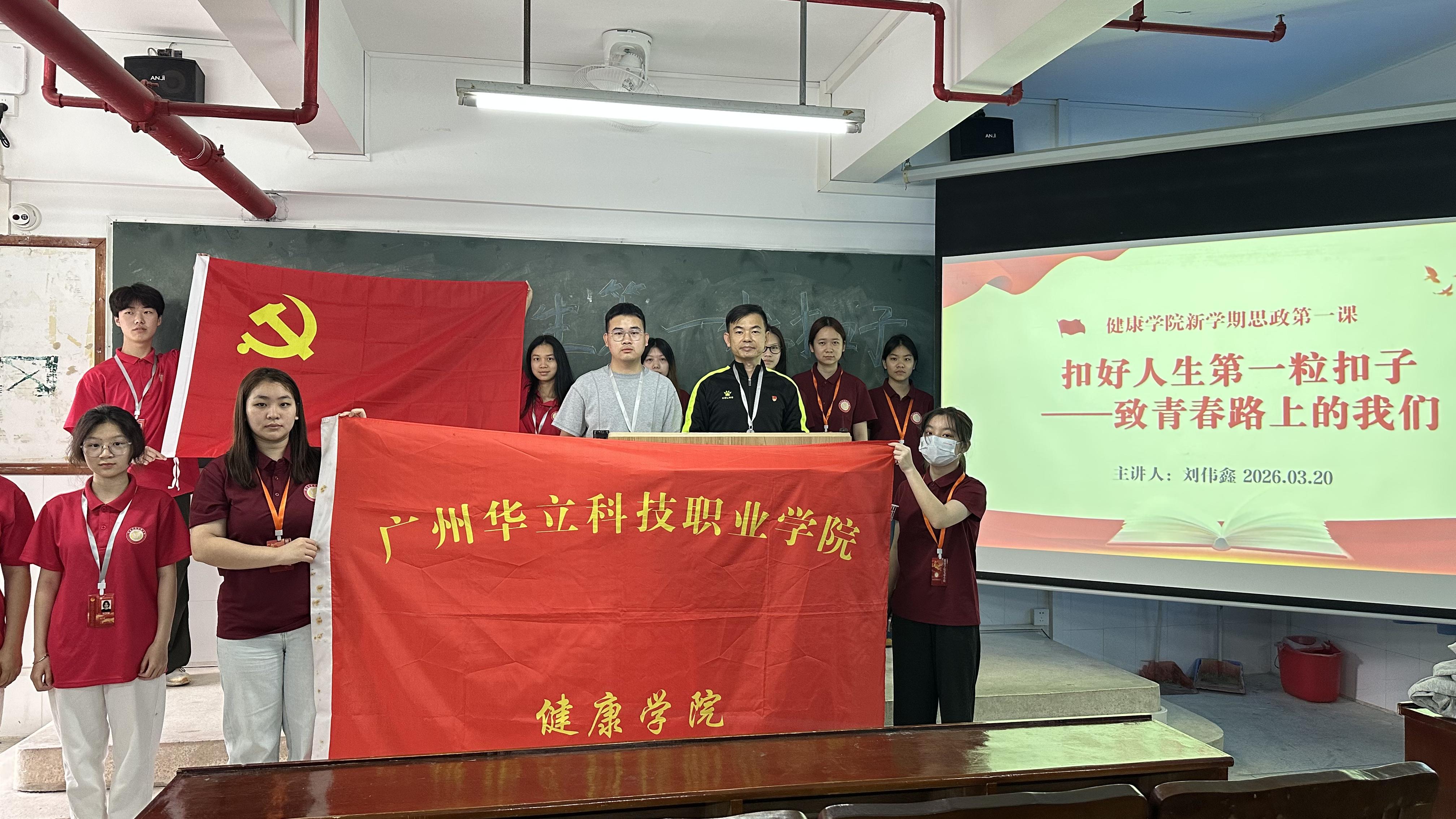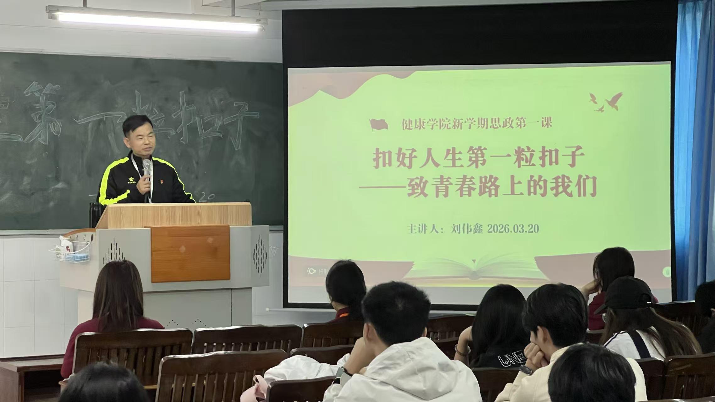 2026年3月20日上午,健康學(xué)院開(kāi)展以“扣好人生第一??圩印虑啻郝飞系奈覀儭睘橹黝}的新學(xué)期思政第一課,課程由學(xué)院直屬黨支部書(shū)記劉偉鑫同志主講,為學(xué)院部分學(xué)生帶來(lái)了一場(chǎng)深刻的思想洗禮,引導(dǎo)青年學(xué)子在青春路上樹(shù)立正確的價(jià)值導(dǎo)向,筑牢成長(zhǎng)根基。