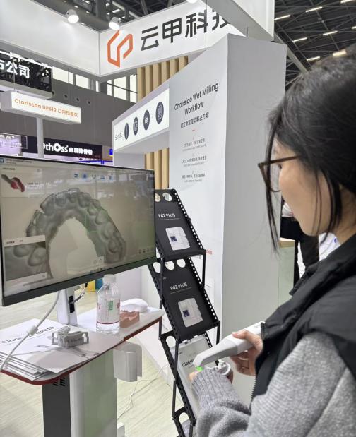 在舉辦的行業(yè)展會(huì)上,云甲科技展示了其前沿的數(shù)字化口腔解決方案。首先展示了核心設(shè)備—UP610口內(nèi)掃描儀,吸引了眾多師生與行業(yè)人士的關(guān)注 ?,F(xiàn)場技術(shù)人員手持掃描儀進(jìn)行演示,屏幕上實(shí)時(shí)生成的高精度牙齒3D模型,生動(dòng)詮釋了數(shù)字化的便捷與高效。又亮相了義齒設(shè)計(jì)軟件——UPCAD v2.0,云甲科技的技術(shù)人員也給我們展示了他們獨(dú)自研發(fā)的CAD設(shè)計(jì)系統(tǒng)以及教學(xué)評(píng)分系統(tǒng),讓學(xué)生能夠更直觀看到自己的不足,夯實(shí)了學(xué)生的基礎(chǔ)知識(shí)。