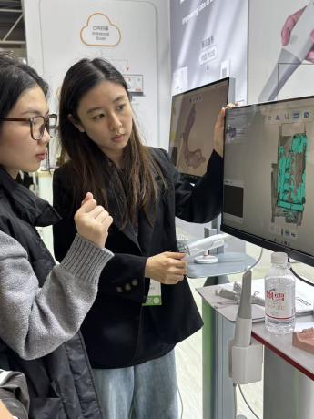 校企雙方的合作不僅停留在設(shè)備展示層面,更深入到技術(shù)交流與人才培養(yǎng)環(huán)節(jié)。展會(huì)現(xiàn)場,我校師生積極參與互動(dòng)體驗(yàn),圍繞屏幕上的3D掃描圖像,與云甲科技的技術(shù)人員展開了熱烈的討論與學(xué)習(xí) 。通過親手操作掃描設(shè)備、觀察模型重建過程,學(xué)生們對(duì)“口內(nèi)掃描”技術(shù)的原理與應(yīng)用有了更為直觀和深刻的理解 。