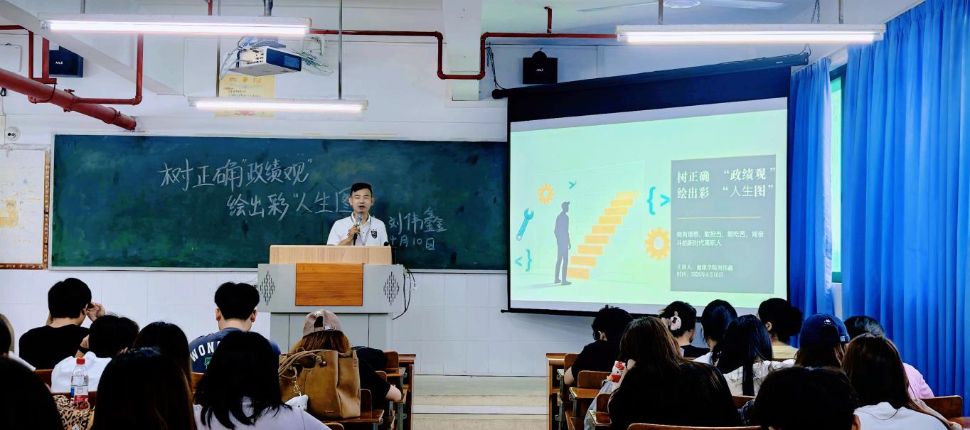 課堂上,劉偉鑫書記圍繞“為何樹立、反對什么、堅持什么、如何踐行”四大模塊展開講解。他打破了“政績觀與學生無關”的誤區(qū),指出政績觀是個人價值觀在日常的體現(xiàn),并引導同學們深刻思考“大學三年是混文憑還是練本事”的成長命題。