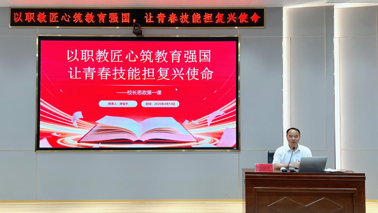 課堂上,廖俊杰校長立足國家戰(zhàn)略全局,緊扣2026年全國兩會關于“加快發(fā)展新質(zhì)生產(chǎn)力”“建設技能型社會”的重大部署,聚焦職業(yè)教育強國使命,運用翔實數(shù)據(jù)、鮮活案例與深刻理論,從三個維度系統(tǒng)闡釋了新時代職業(yè)教育的價值定位與青年學子的成長路徑。
