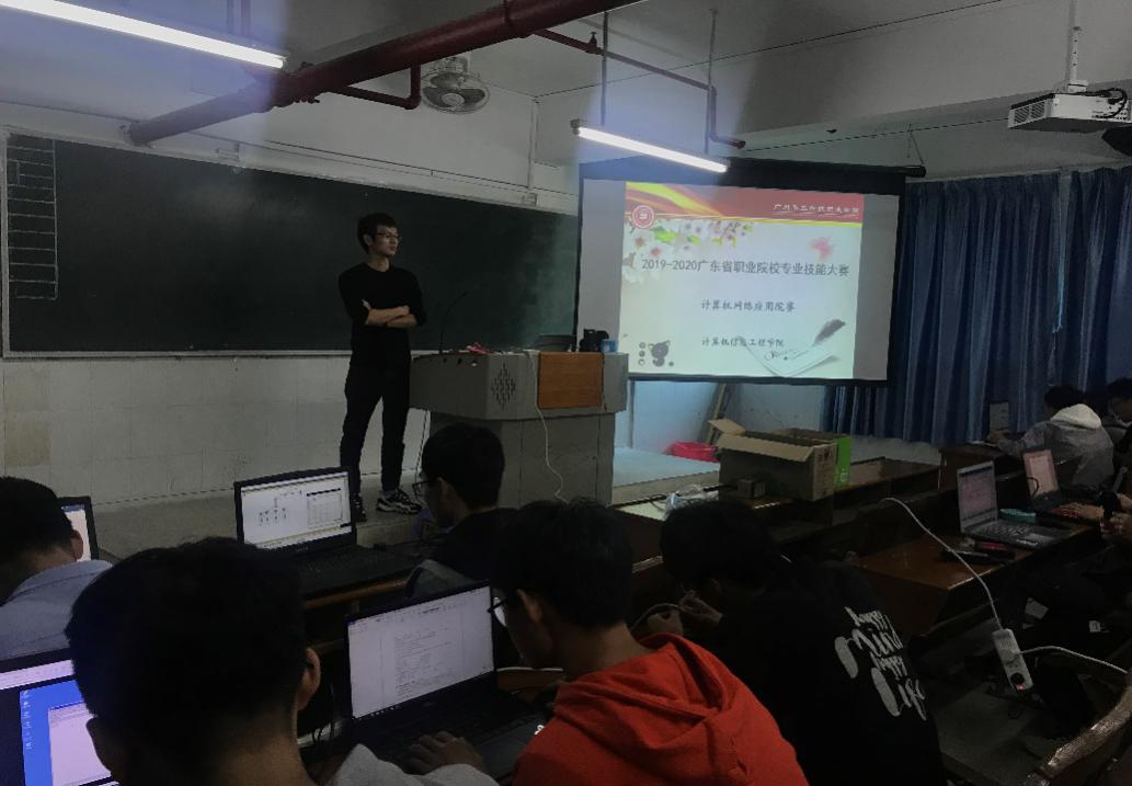 計算機(jī)信息工程學(xué)院擬參加多項賽項,計算機(jī)網(wǎng)絡(luò)技術(shù)專業(yè)的同學(xué)們也興致勃勃激情滿滿地準(zhǔn)備參加本專業(yè)的大賽——計算機(jī)網(wǎng)絡(luò)應(yīng)用大賽。通知文件下發(fā)后,計算機(jī)網(wǎng)絡(luò)技術(shù)專業(yè)各個年級各個班級互不示弱,競相報名,參賽隊伍達(dá)到13個之多。為了選拔出最優(yōu)秀的同學(xué)代表學(xué)校去參加廣東省職業(yè)院校專業(yè)技能大賽,2019年11月29日下午16時,計算機(jī)信息工程學(xué)院在西三301教室舉辦了計算機(jī)網(wǎng)絡(luò)應(yīng)用校內(nèi)選拔賽。
