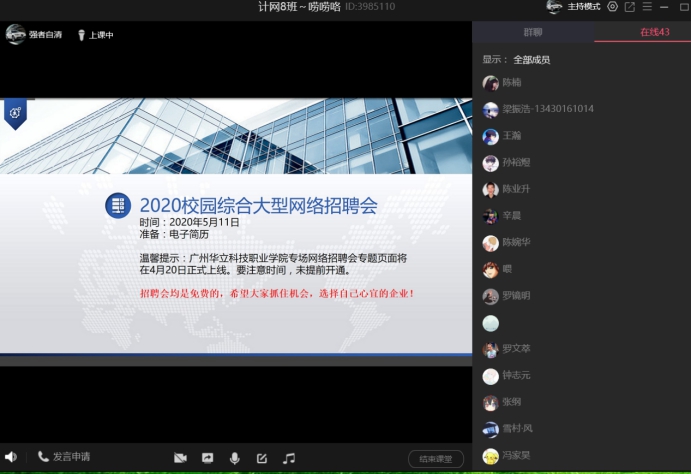 5、講解前程無憂空中雙選招聘月相關(guān)事宜及注意事項,并組織學(xué)生按時參加。