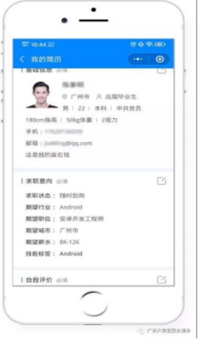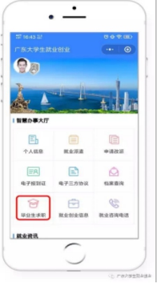 第二步:點(diǎn)擊“畢業(yè)生求職”模塊,如已綁定學(xué)籍的同學(xué)即可完善簡歷并投遞。