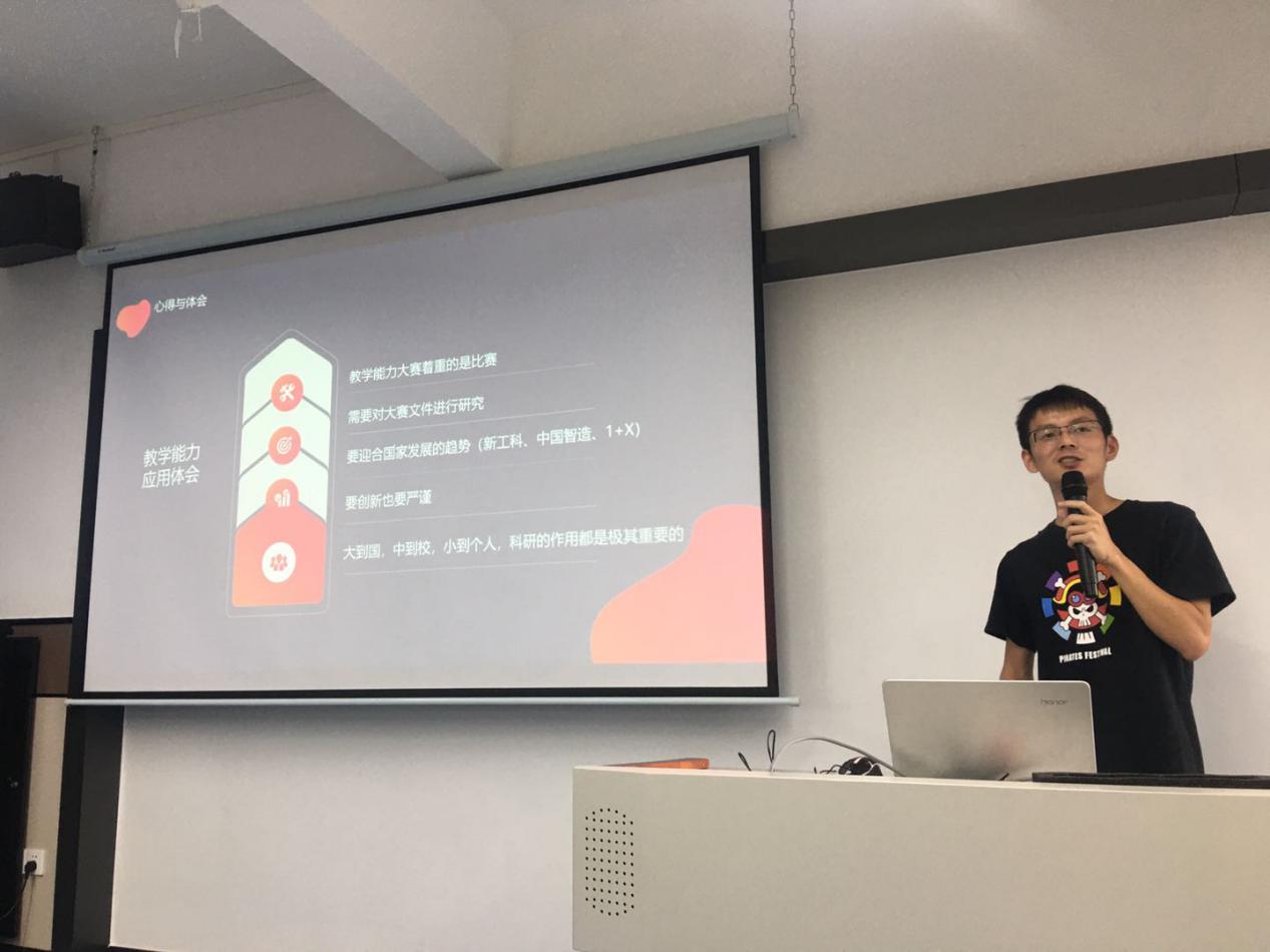 對“教學能力大賽”提出了自己個人的觀點,認為教學能力大賽看重的是比賽,要迎合國家發(fā)展的趨勢(新工科、中國制造、1+X),既要創(chuàng)新也要嚴謹,要做到大到國,中到校,小到個人,科研的作用都極其重要的。