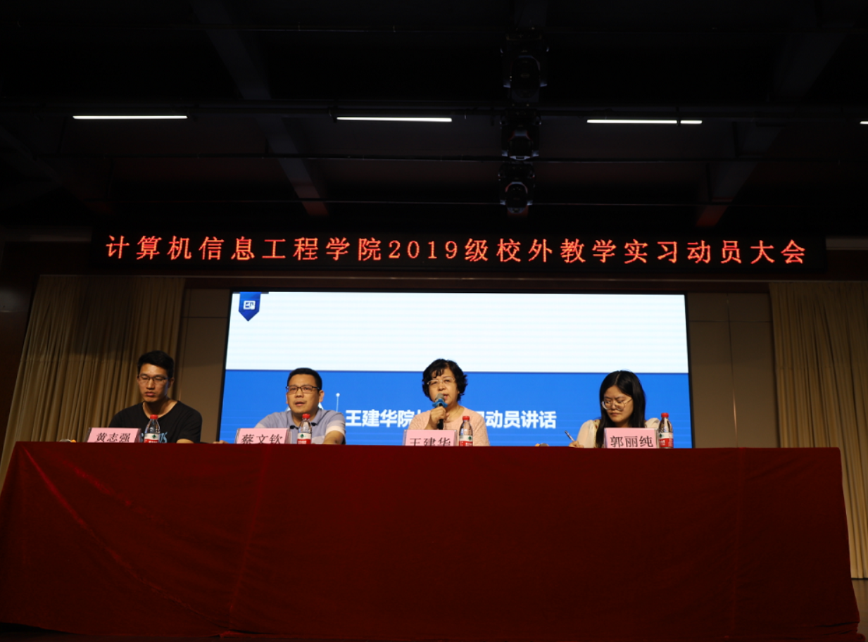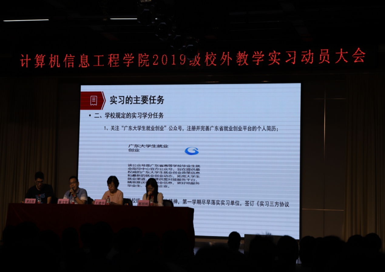 以“厚德、務(wù)實、強能、創(chuàng)新”為辦學(xué)理念,突出實踐教學(xué),全面推行“工學(xué)結(jié)合、校企合作”,著力構(gòu)建“在校內(nèi)集中教學(xué)兩年+校外教學(xué)一年”(簡稱“2+0.5+0.5”)的人才培養(yǎng)模式。2021年4月15日晚,計算機信息工程學(xué)院在圖書館8樓隆重舉行了2019級校外教學(xué)實習(xí)動員大會,出席此次大會的有計算機學(xué)院院長王建華教授,校外教學(xué)副主任蔡文欽老師、校外干事黃志強老師,團(tuán)支書記郭麗純老師以及全體實習(xí)指導(dǎo)老師和近千名2019級學(xué)生。