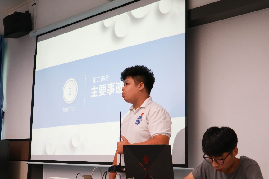 會議開始,全體起立奏唱團(tuán)歌,隨后9位主席團(tuán)候選人依次上臺進(jìn)行演講。每位候選人都展示了各自一年來的工作經(jīng)歷,以及未來的展望和努力做好團(tuán)學(xué)工作的決心