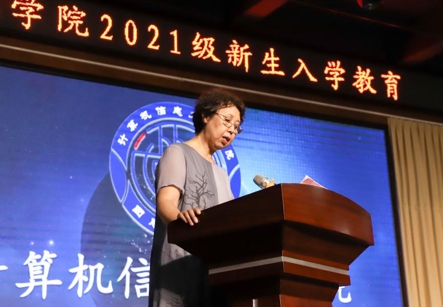 先由李麗萍教授致辭,李麗萍教授對(duì)21級(jí)新生的到來(lái)表示喜悅,介紹了計(jì)算機(jī)學(xué)院概況,并深情寄語(yǔ),希望新生們能在較短的時(shí)間內(nèi)適應(yīng)大學(xué)新生活,以學(xué)習(xí)為主,學(xué)會(huì)感恩,懂得人情世故。