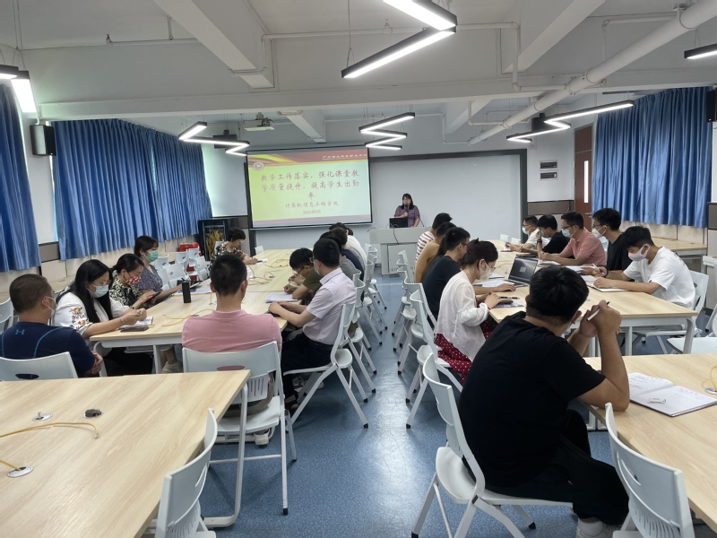 2022年5月26日,計算機學(xué)院于西三-501室召開“教學(xué)落實,強化課堂教學(xué)質(zhì)量提升,提高學(xué)生出勤率”工作例會,會議由計算機學(xué)院王建華院長主持,參加會議的有辦公室主任蔡文欽、教學(xué)副主任閔小翠、學(xué)管副主任郭麗純、校外教學(xué)副主任黃志強以及學(xué)院全體老師。