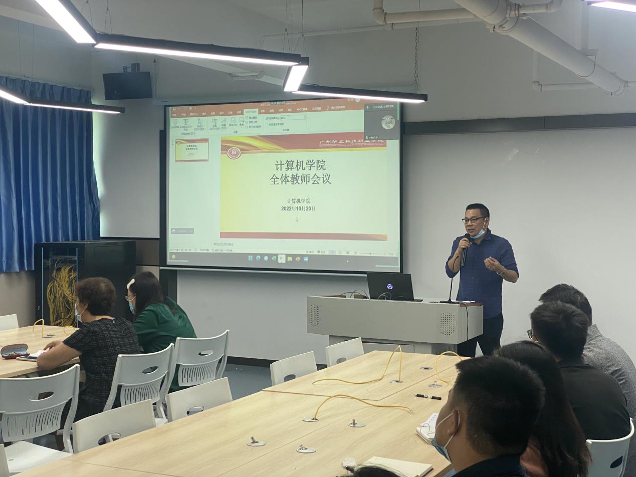 2022年10月20日,計(jì)算機(jī)學(xué)院于西三-501召開全體教職工會(huì)議(連接云浮),云浮計(jì)算機(jī)系所有老師都積極參會(huì),會(huì)議由王建華院長主持。