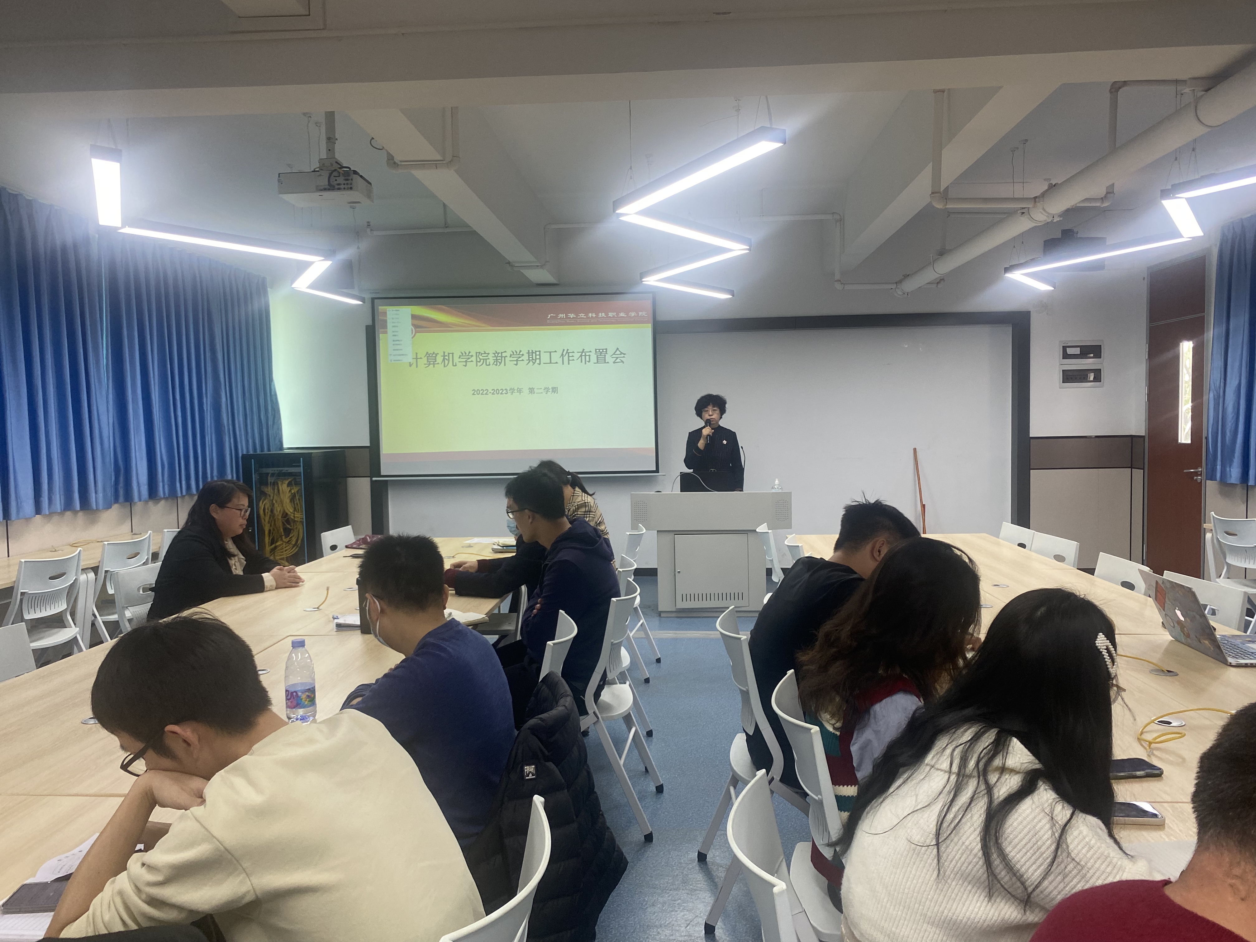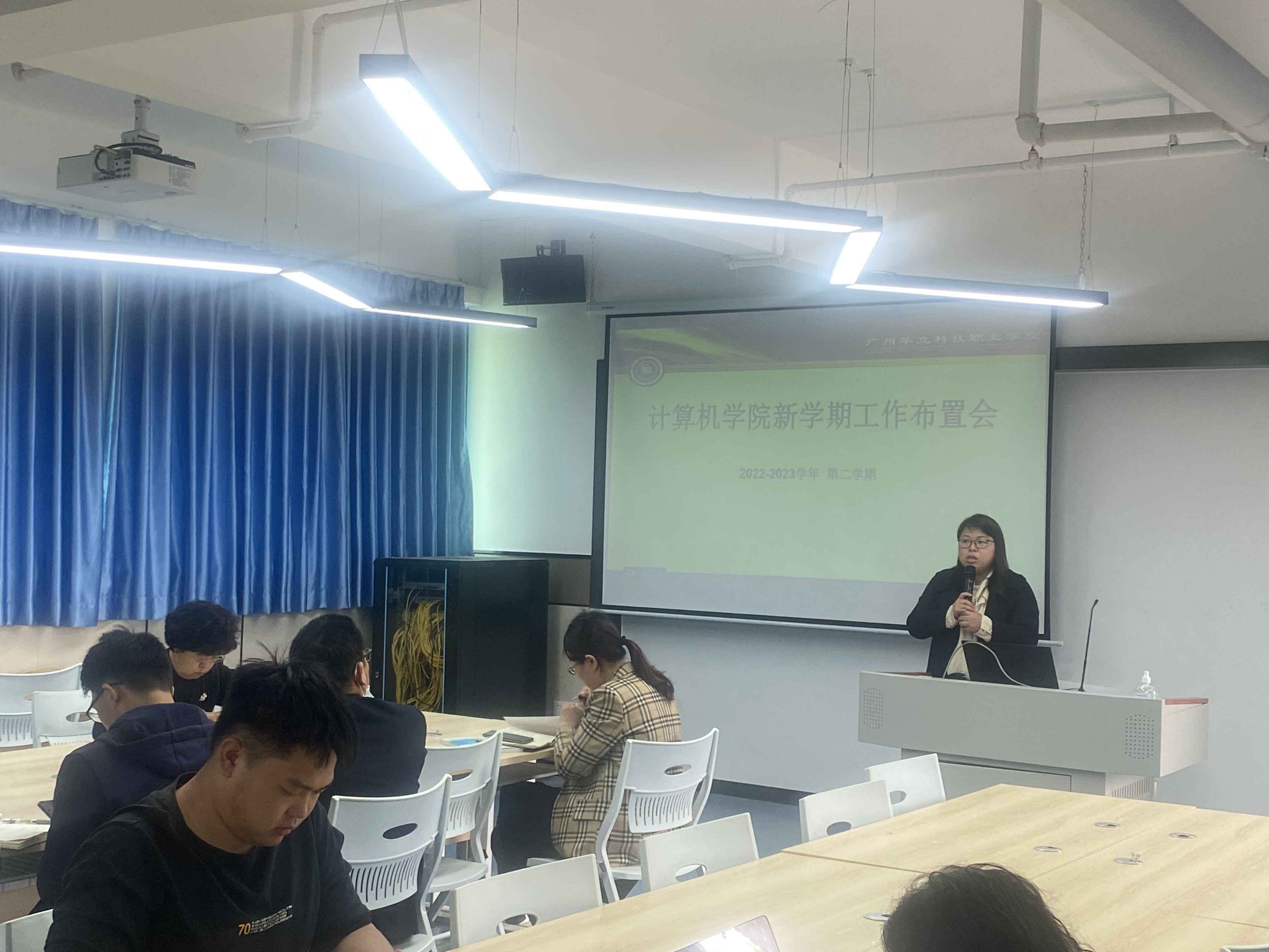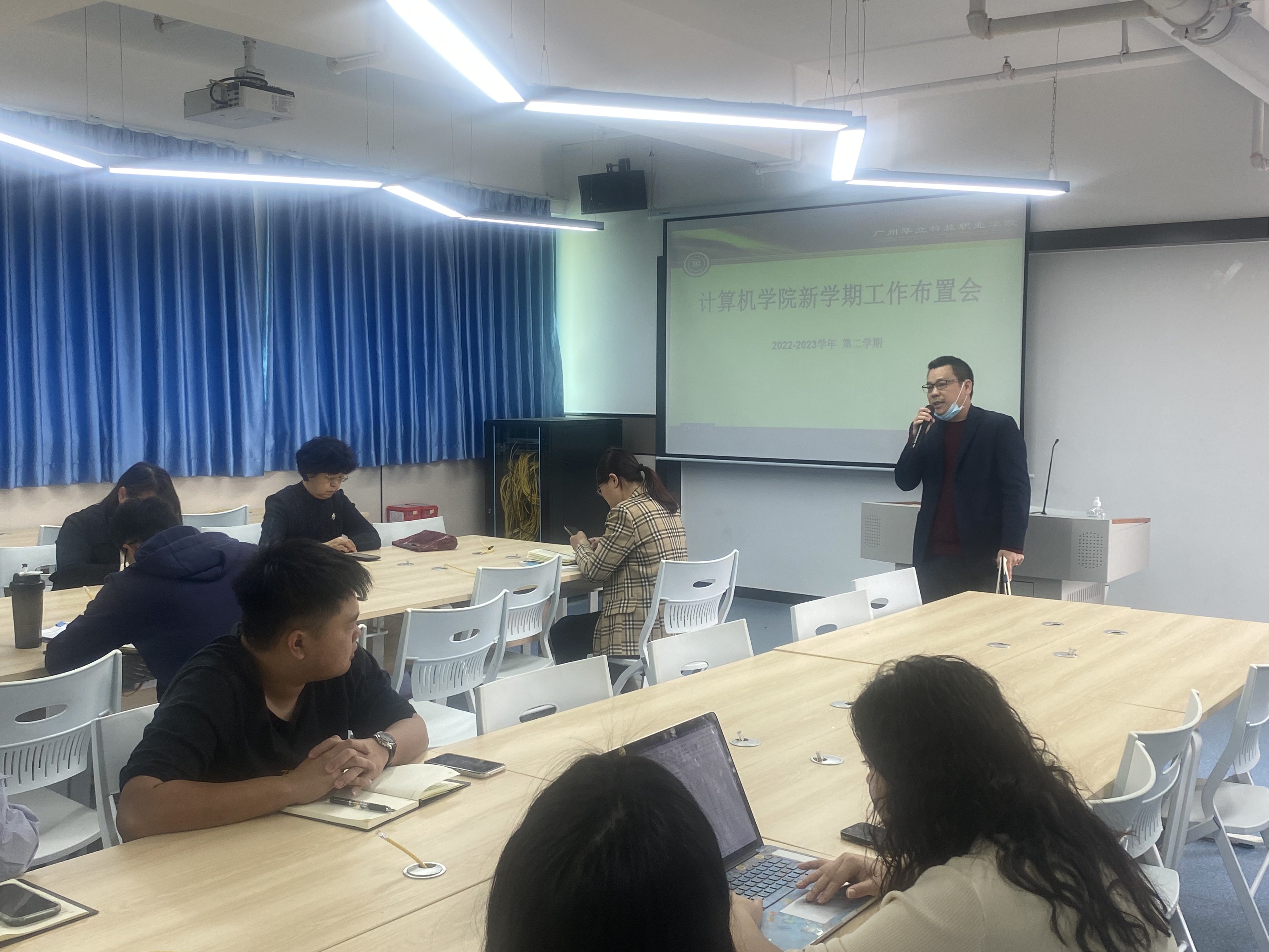 為貫徹落實學校2022-2023學年春季新學期教職工大會精神,計算機信息工程學院于2023年2月17日上午9:30在西三501多媒體課室召開了學院新學期全體教職工會議,學院王建華院長、黨總支部書記閔小翠、各科室主任、各系主任及學院全體老師參加了會議。