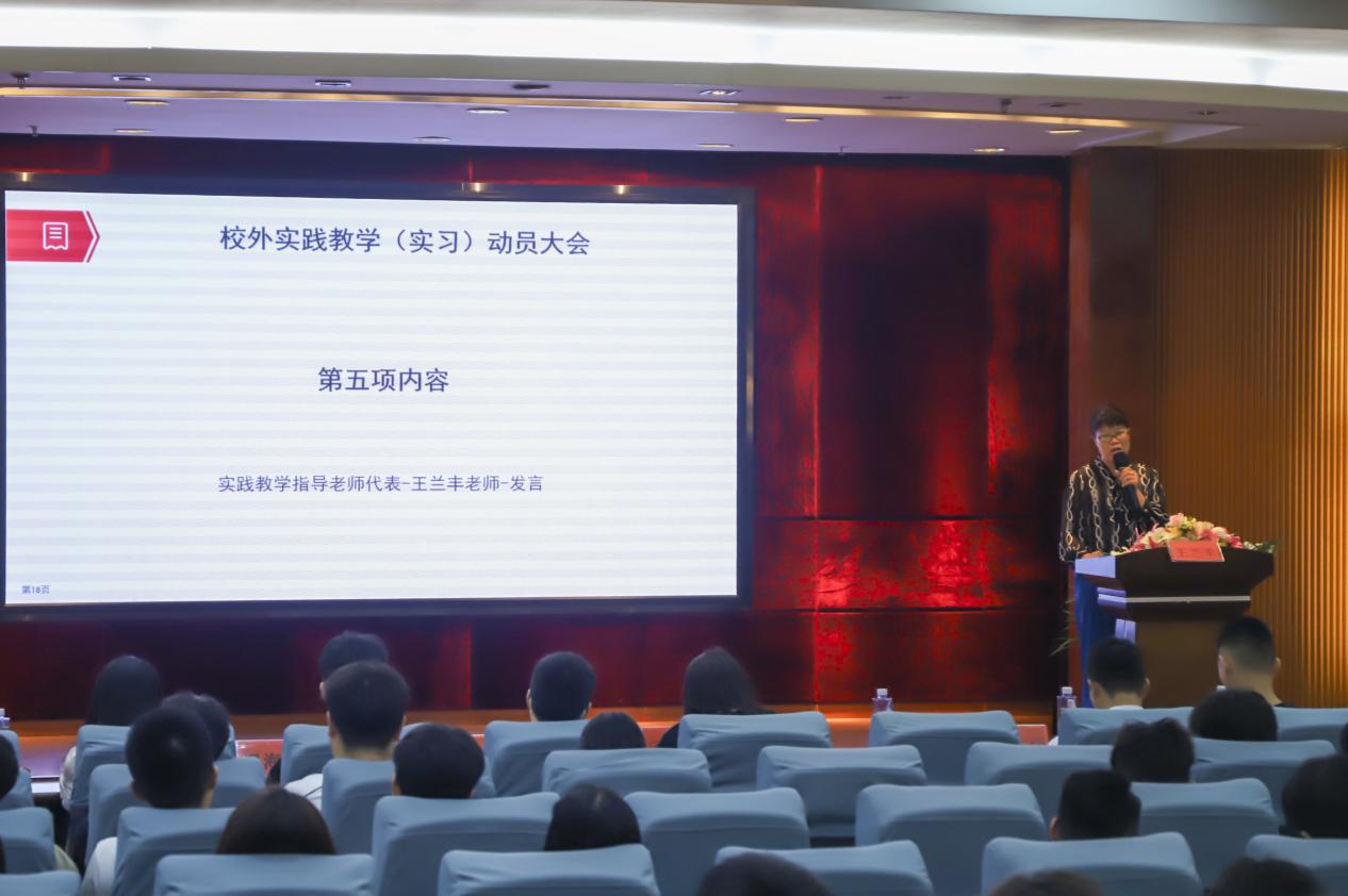 動員會上,首先由校外實踐教學副主任黃老師作實習任務布置和要求,希望同學們在即將踏入新的征程,新的起點,要有新的目標,新的作為,參加畢業(yè)前所必修的校外實踐教學課程,獲取相應學分;每個人都需要服從安排、努力完成,更要爭取出色的完成,一年后順利得到畢業(yè)資格。并強調(diào)出門在外,要“關(guān)注安全,關(guān)愛生命,增強自我保護意識”,第一任務是要注重人身財產(chǎn)安全。