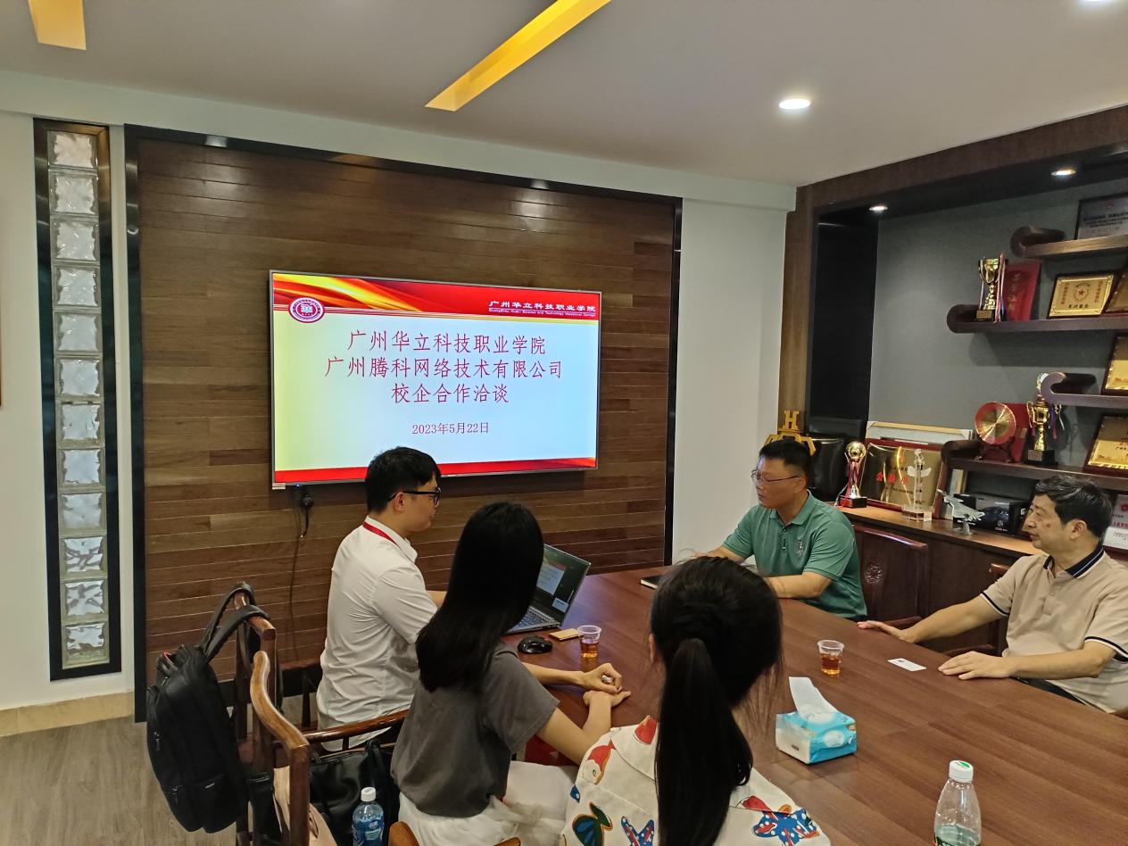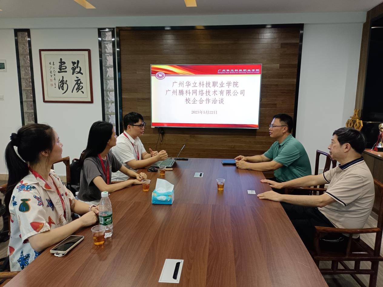 2023年5月22日,廣州華立科技職業(yè)學(xué)院校長易健民、實(shí)踐教學(xué)科副科長韋建林、計(jì)算機(jī)信息工程學(xué)院校外教學(xué)副主任黃志強(qiáng),一行走訪了廣州騰科網(wǎng)絡(luò)技術(shù)有限公司拓崗洽談,廣州騰科公司負(fù)責(zé)校企合作陳經(jīng)理等人熱情接待,并組織校企洽談會(huì)。